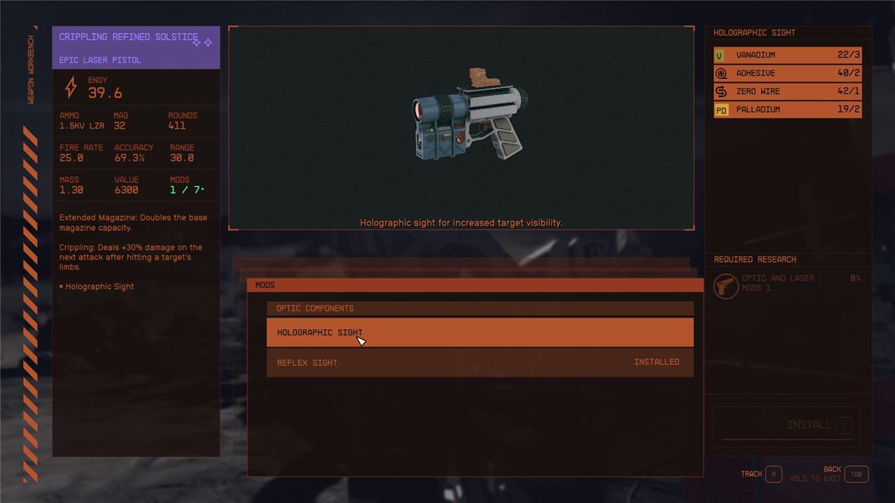 To build the weapon workbench, for example, you’ll need three adhesives. Then, while working in the weapon workbench, you’ll need one adhesive if you want to add a reflex sight or holographic sight to your laser pistol. Like many resources in Starfield, it’s not a basic building block like iron or aluminum, but it shows up often enough that you’re going to end up making a lot of trips to the store if you’re not well-stocked.