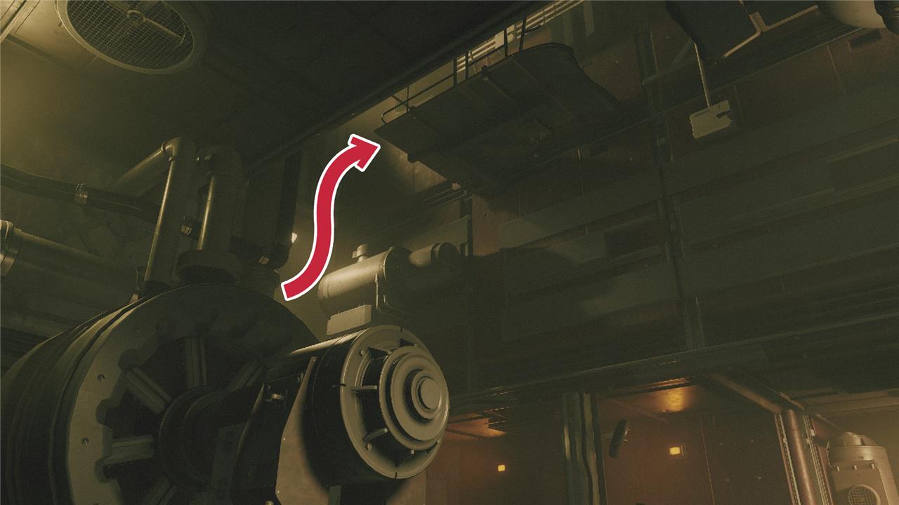 From the Trade Authority entrance, head left and up the stairs. Once you’re up the stairs, you’ll notice the blue quest marker will point directly above you, but how do you get up there? You jump. Scale up toward the marker by leaping from the nearby machines like so: