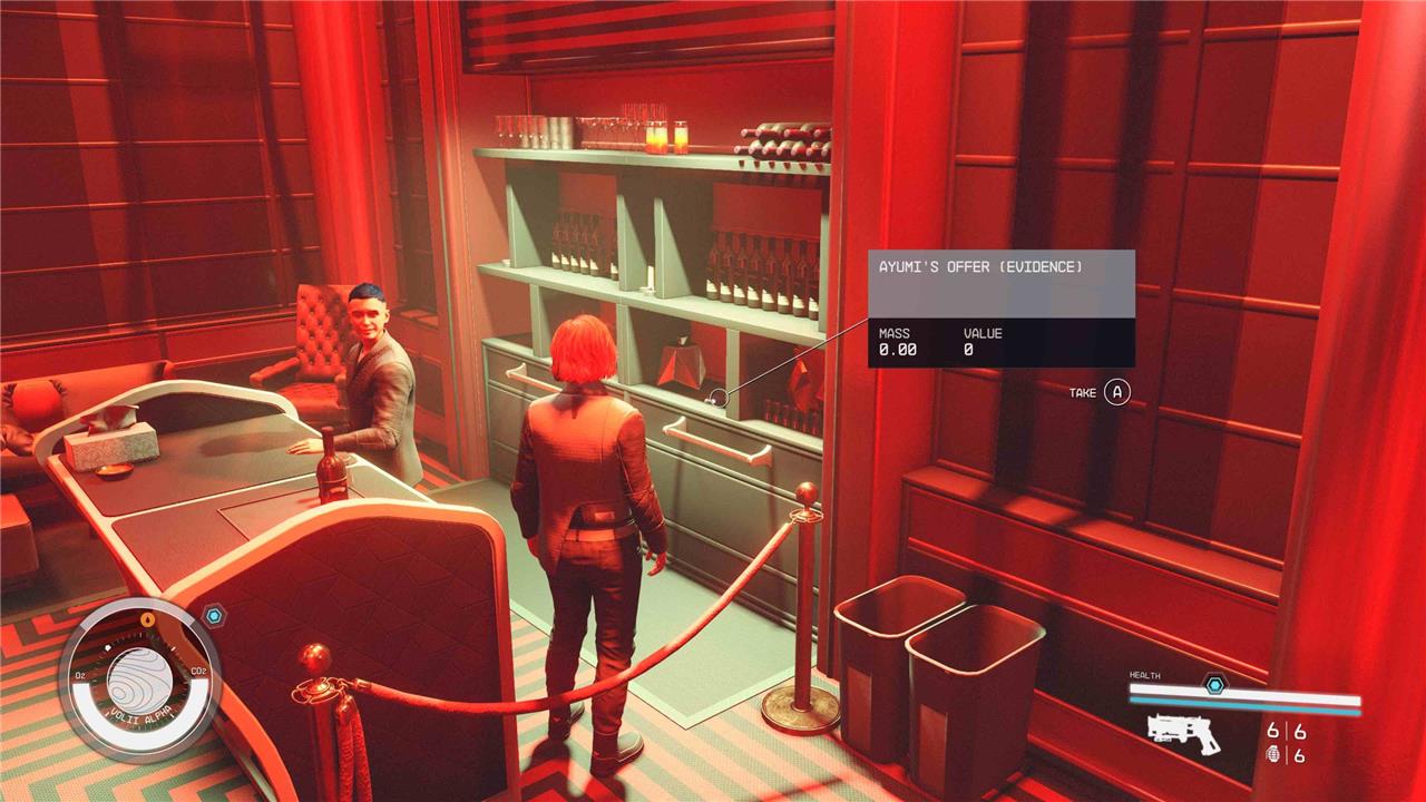 The next piece of evidence is located in Euphorika’s private lounge, which you’ll already need to gain access to for the “Absolute Power” mission. To get inside, talk to Myka the bartender and pay the 5,000 credit entrance fee. Once in the private lounge, get behind the bar. Sitting on a shelf next to a fancy ice bucket is the Ayumi’s Offer (Evidence) audio log.