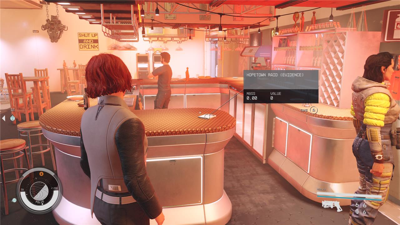 The HopeTown Raid evidence for the Burden of Proof quest in Starfield is located in the Valo System on the planet Polvo, specifically in the settlement of Hopetown. To find it, players should land at Hopetown and head directly to the main building, where they will find a bar called the Pit Stop. Inside the Pit Stop, the evidence slate is placed on the front bar counter at the back of the room. This piece of evidence is one of several found on planets unrelated to the Crimson Fleet questline and can be collected without engaging in any specific mission there.