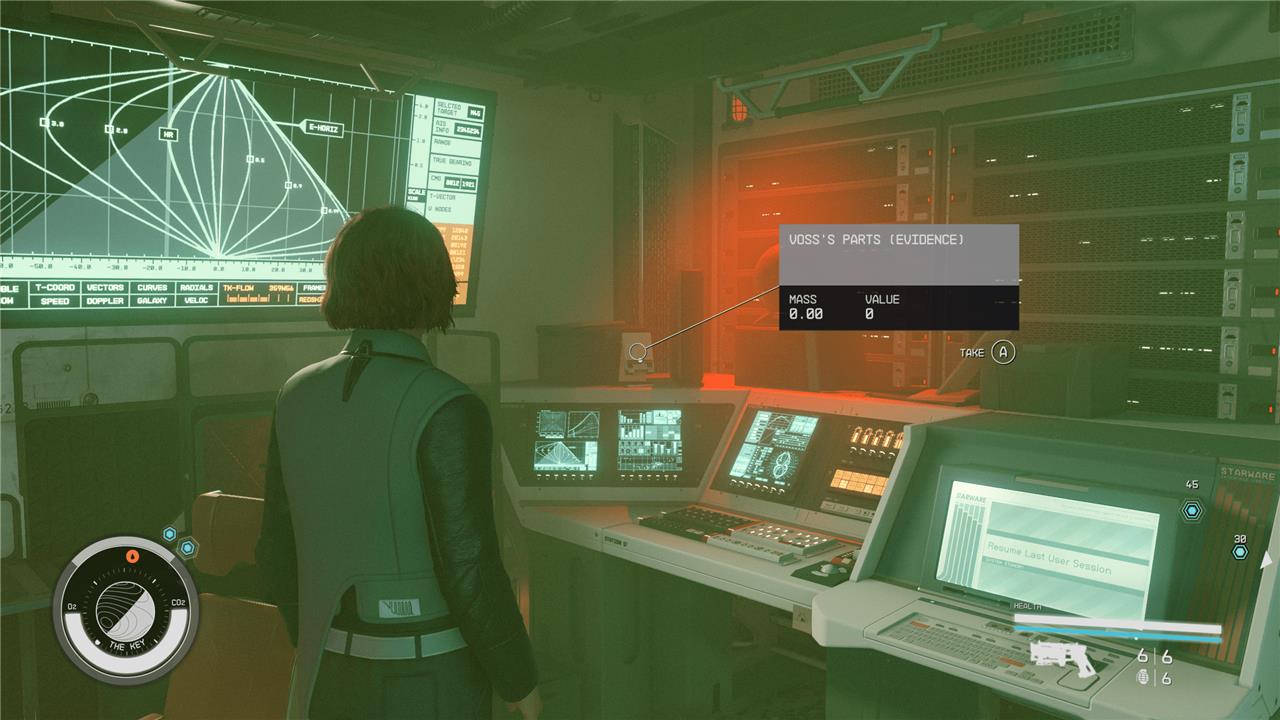 Voss’s Parts is one of the three evidence slates found on The Key during the “Burden of Proof” quest in Starfield. To locate this evidence, players must reach the Command Center of The Key and ascend to the second level where Delgado’s room and headquarters are situated. In Delgado’s main room, look to the back left section near his personal terminal; there, a slate holder contains the Voss’s Parts evidence. This piece is positioned atop a large computer console in a small room accessed by stairs within the operations area, making it a key collectible for advancing the quest and gaining rewards.