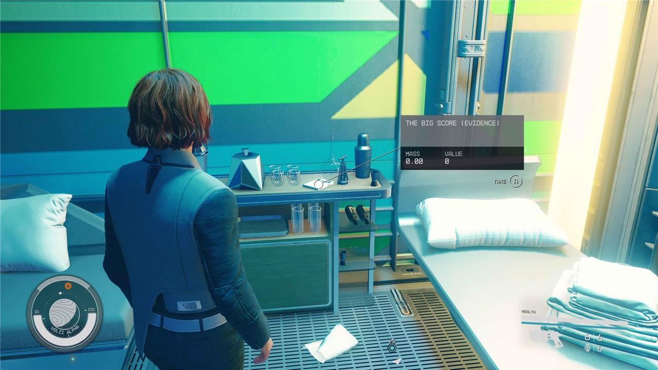 The evidence titled “Mira’s Demise” in Starfield’s “Burden of Proof” quest can be found on the Crimson Fleet base known as The Key, located in the Kryx system. Specifically, this evidence slate is hidden in the bunk area of The Key’s crew quarters. To locate it, players need to navigate past the bar and gym area, head to the southwesternmost room in the bunks section, which contains a barbell, and find the evidence resting on top of a green box or a black object on a small table near the entrance of that room. This room is also marked by a large weight and a skull drawing on the wall. The evidence is one of three slates found on The Key and is accessible after the initial tour of the station.