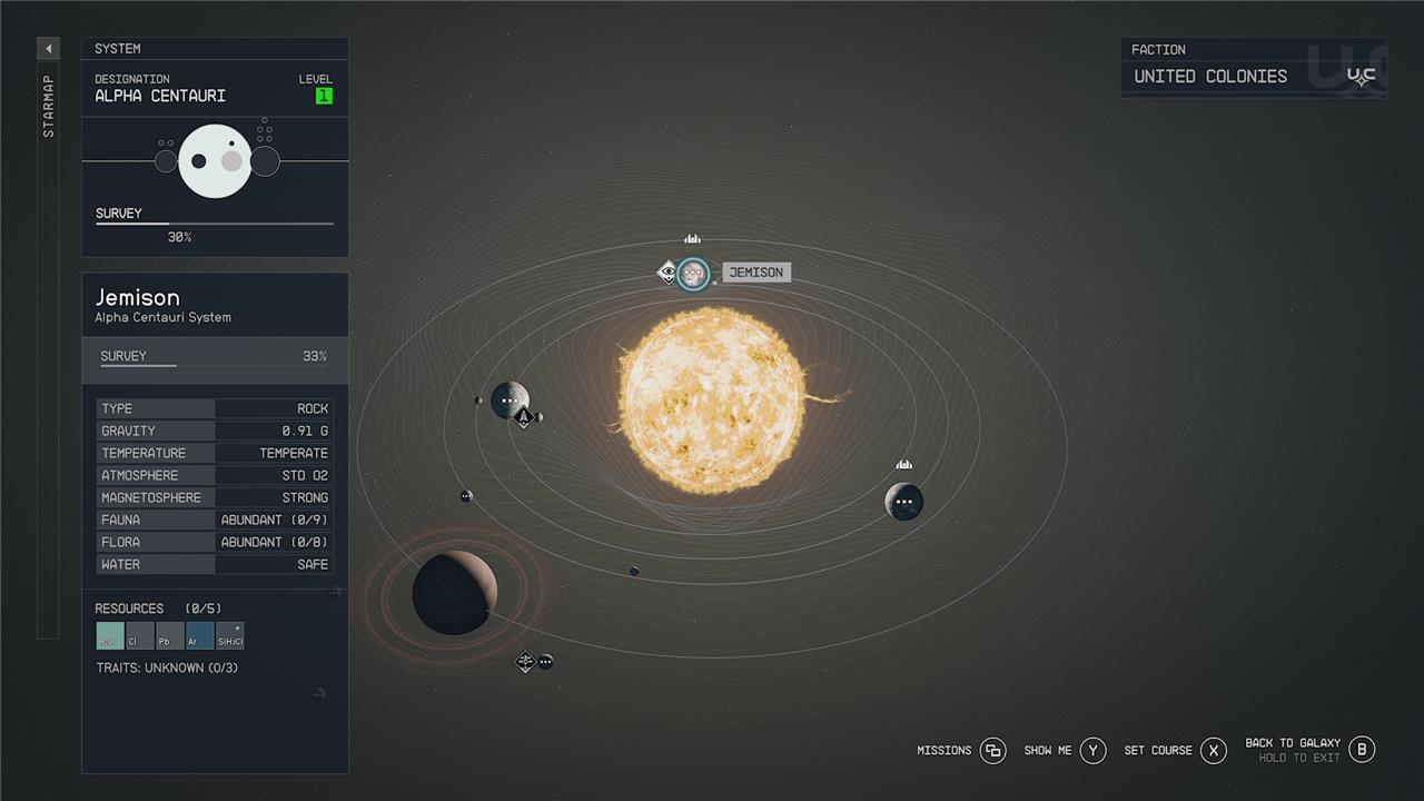 You’ve got a couple options for setting the course to your next mission objective if you have an active mission. In the Missions menu, having an active mission and objective will add a show on map and a set course option to the bottom of the screen – show on map is more useful for places you haven’t visited yet, and set course brings you right to the landing target for places you’re familiar with.