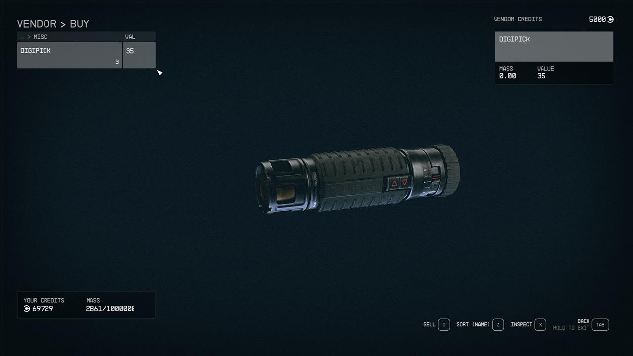 There are quite a few things worth buying from Jemison Mercantile as well. Amoli sells the occasional weapon, suit, or helmet that might be good, but they also sell items that you desperately need and can be hard to come by out in the open world: med packs and Digipicks. Amoli stocks three or four each day, and if she runs out, you can do a quick run back to your ship and sleep for 24 hours (the same goes for if she runs out of Credits to buy your stuff).