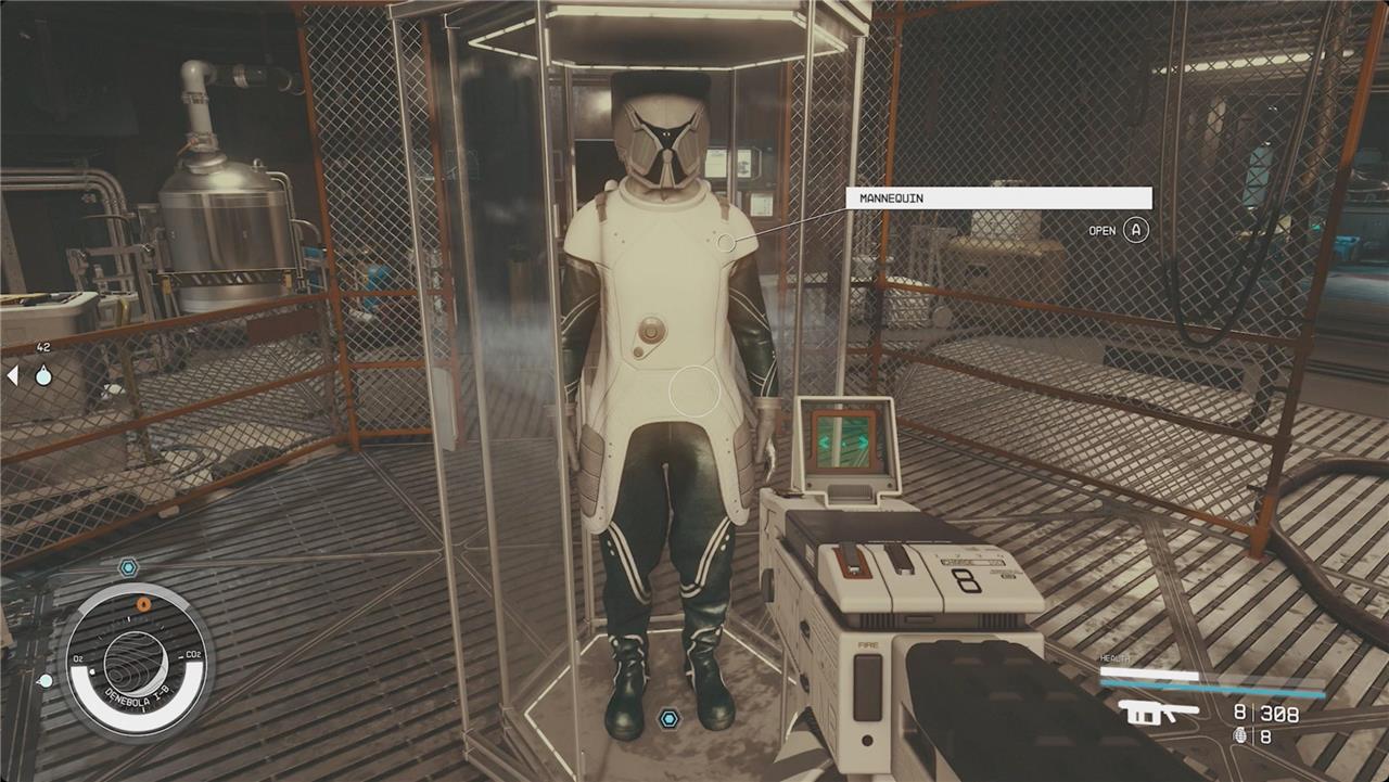 The Mantis’ spacesuit is in a storage room in the near left corner of the cave. You’ll have to open the display case and interact with the mannequin to claim it. (Make sure to poke around for a lot of other loot in the rooms nearby.)