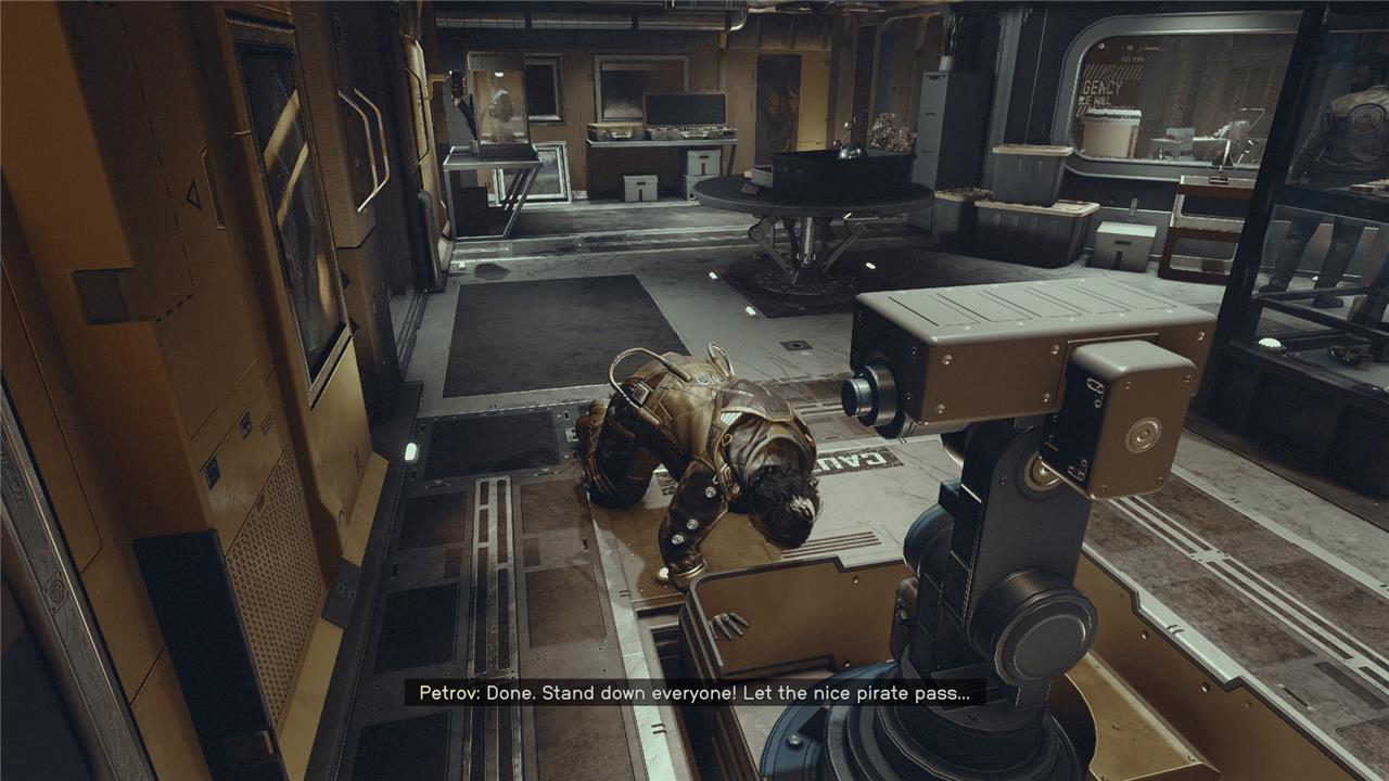 Petrov and his crew will now disdainfully call you a pirate, but they won’t attack you. Feel free to loot anything you’d like from Petrov’s vault or ship, as you’ve already shown that you can take him down if need be. Stuff your pockets and head back to your ship. His crew will promise revenge, but we didn’t hear from Petrov again for the rest of the main campaign. (Although it is distinctly possible that he could show up in a side mission we missed).