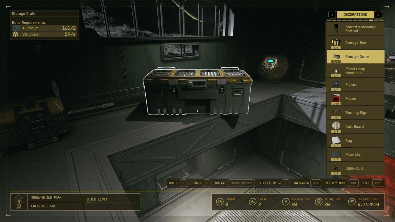 When trying to find space for all your resources, your best bet is to build some chests in your outpost (or getting a bigger cargo container for your ship, since it goes with you everywhere). These crates cost aluminum and “structural material,” both of which are very common items that you can get from the stores or out in the world.