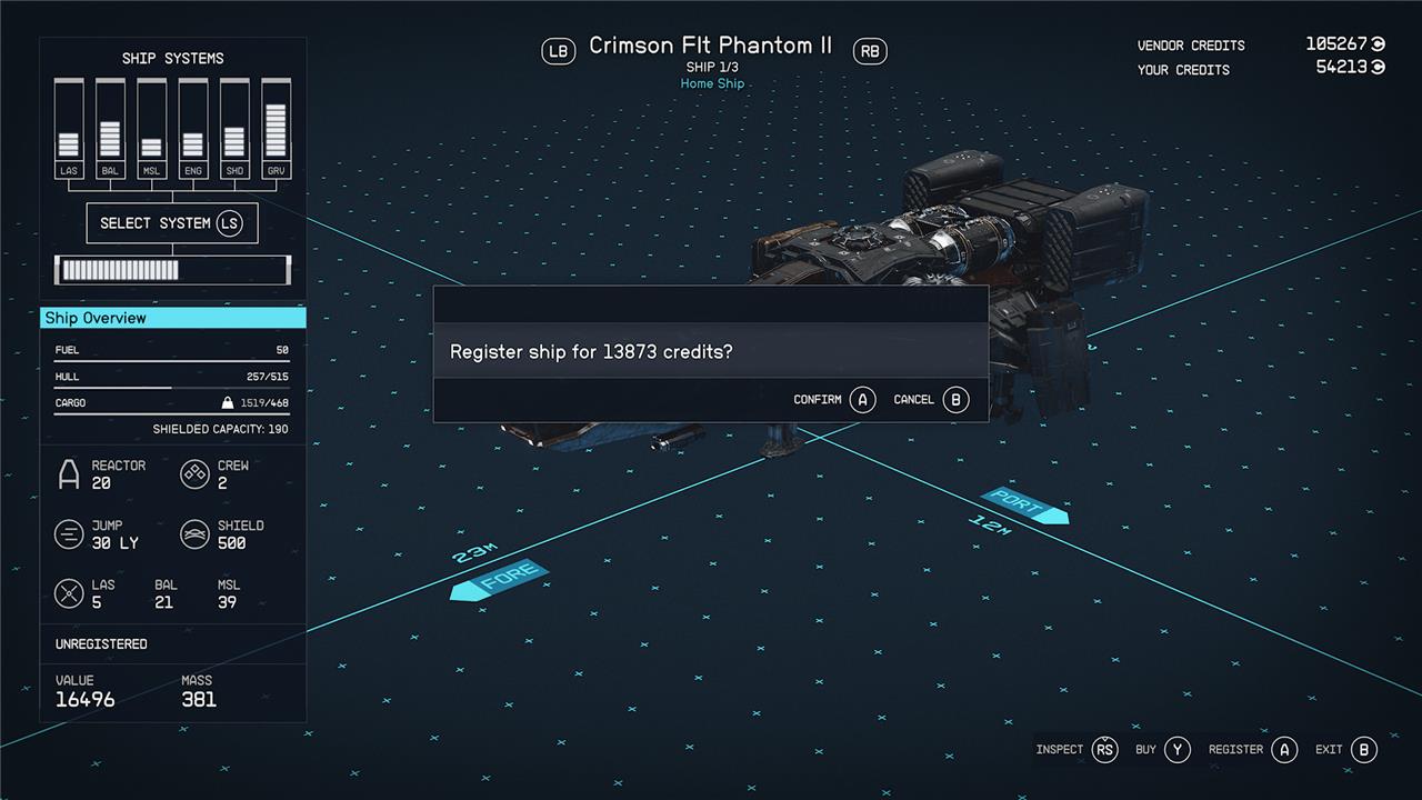 • Avoid registering the ship through the ship merchant because it involves a high markup fee. Instead, register the ship via the ship menu where the registration fee is lower, though it still costs credits.