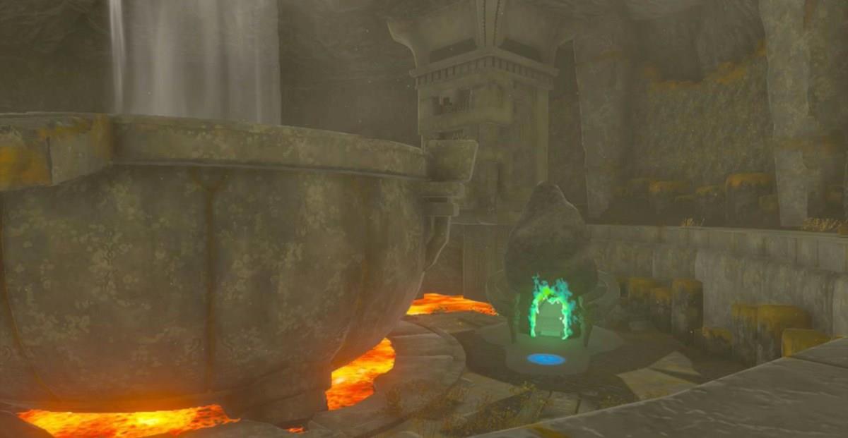 Ignore all those juicy NPC interactions for now and proceed due north, then take a left at the vendor, and just before you hit a makeshift bar/forge area you’ll see a big door covered in runes.