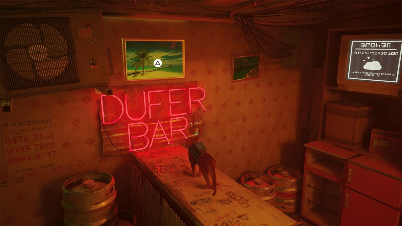 Jump onto the counter and walk up to the sign and picture. Interact with it and the cat will knock the picture off of the wall and reveal the code written underneath: 1283. This is the code to the alley safe, so memorize it or take a screenshot (or just bookmark this guide).