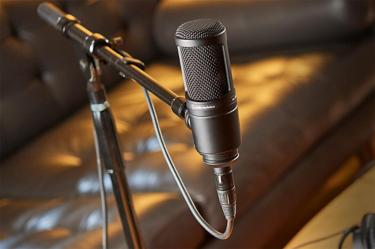 Audio-Technica AT2020 mic boom arm with foam windscreen