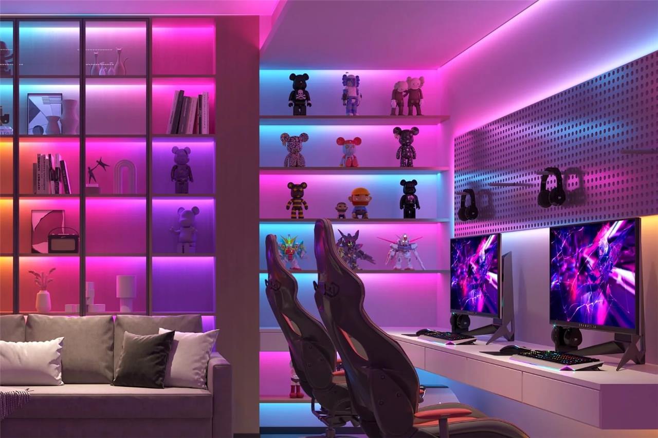 Light strips are an optional but attractive way to light up your gaming space – for your own enjoyment as well as your viewers’. Govee LED light strips are popular for decorating rooms because the LEDs can be customized with Govee’s smart lighting software, and because you can make them any length that you’d like. These strips come in several lengths that you can cut (or add onto yourself) to suit your decorating needs. You can stick them to anything with a steady surface, like a wall, desk, or other furniture in your room, like a bed frame.