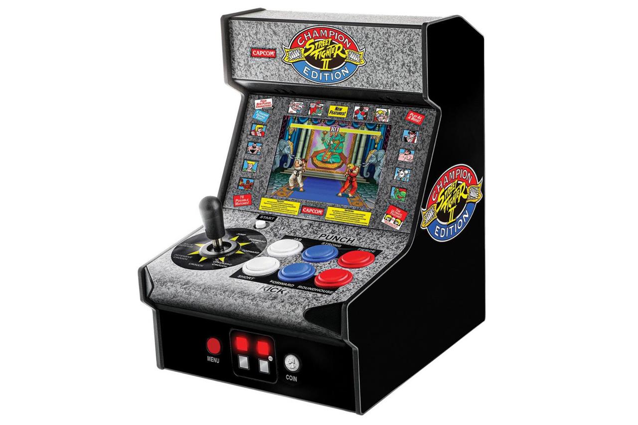Most people may lack the space for a full-size arcade replica of Street Fighter 2. Instead, check out this desk-friendly replica that includes the full Champion Edition game with arcade controls.