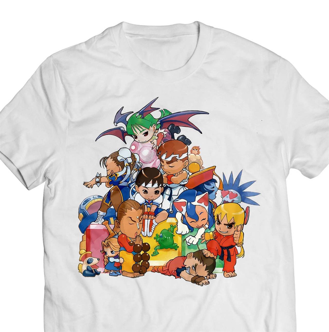 The chibi versions of popular Street Fighter, Darkstalkers, and other Capcom hits are all here on this adorable t-shirt from Etsy seller GamingTee.
