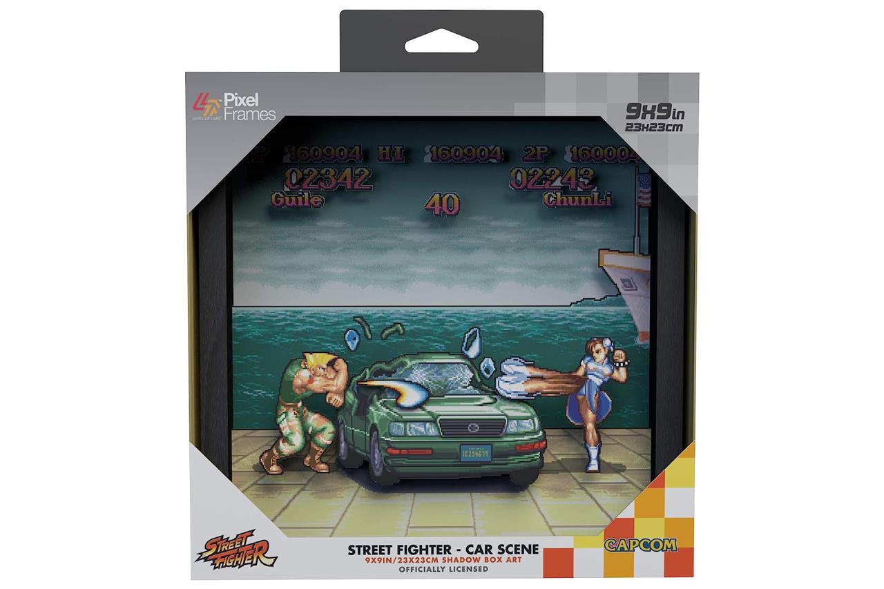 You don’t have to be a huge fan of Street Fighter 2 to remember that you get to beat up a car in the game. But you do have to be a big fan to want that moment preserved with this 9-inch by 9-inch frame.