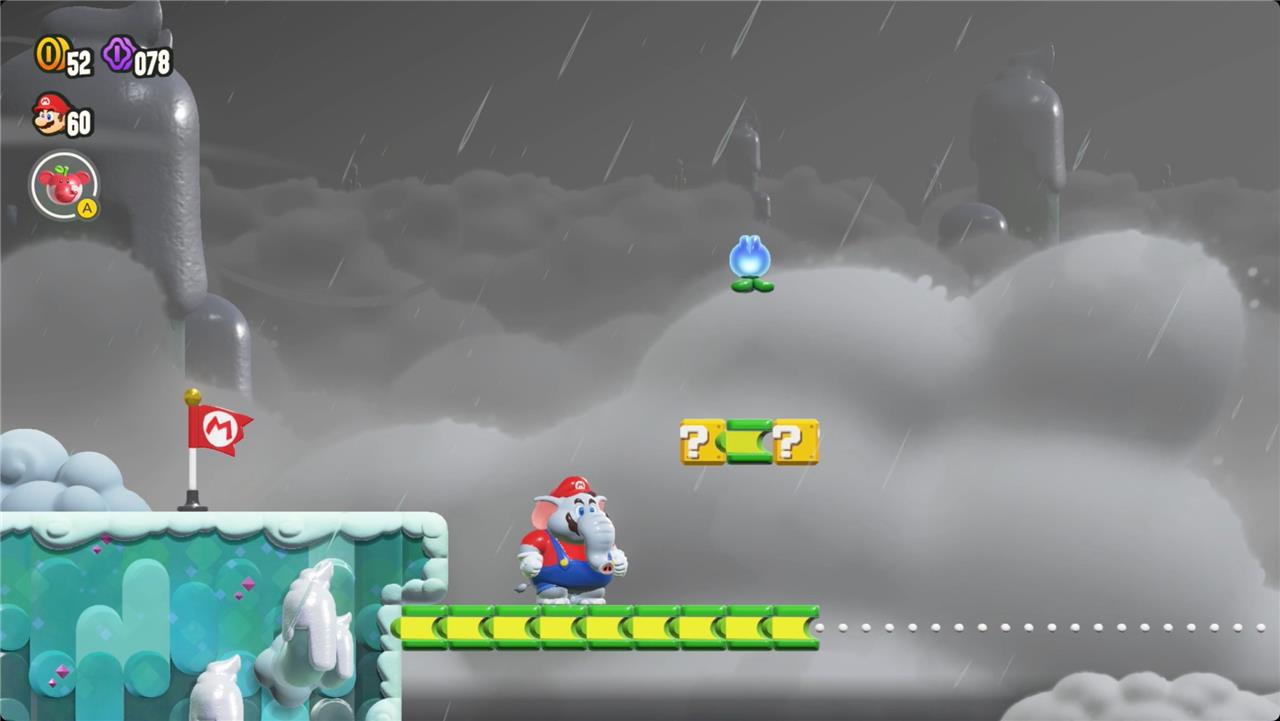 Immediately after the checkpoint, hit the blue flower above the Question Mark Blocks to reveal this level’s Wonder Flower.