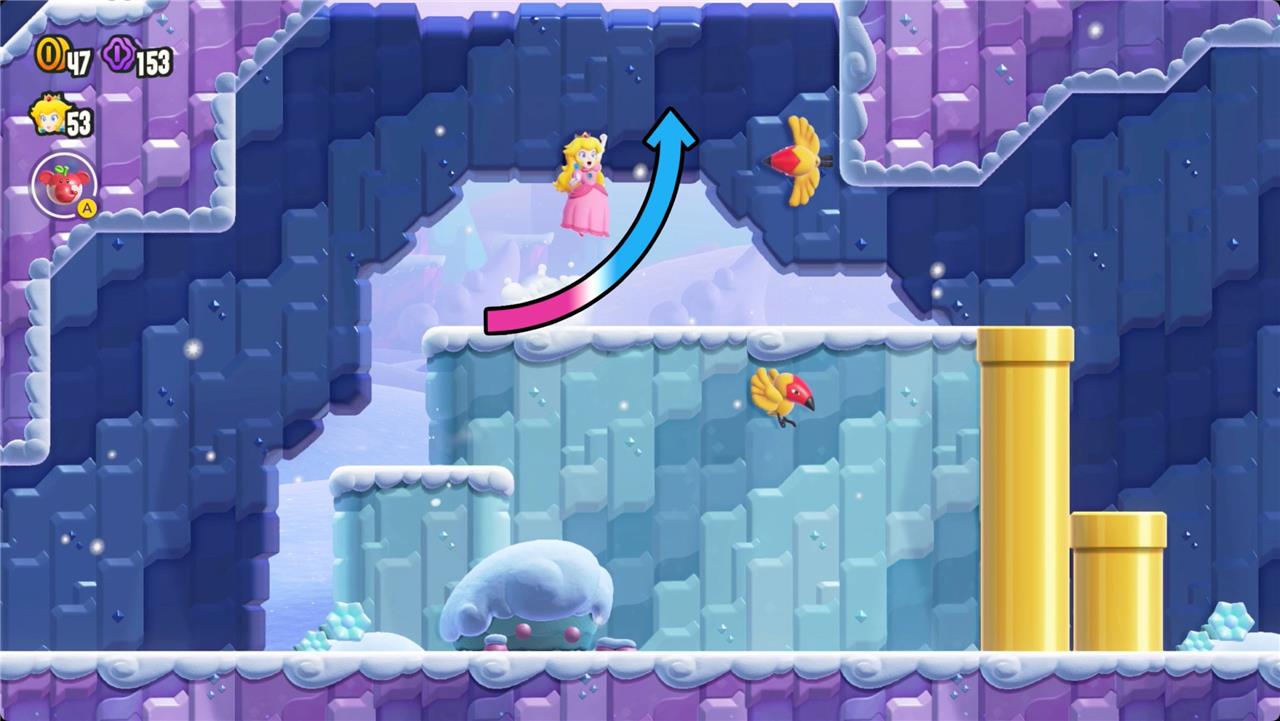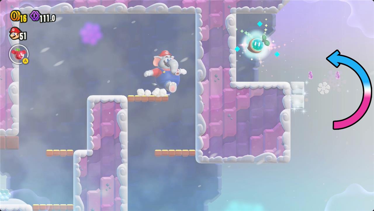 After triggering the Wonder Flower as above, continue riding the rolling snowman to the right.