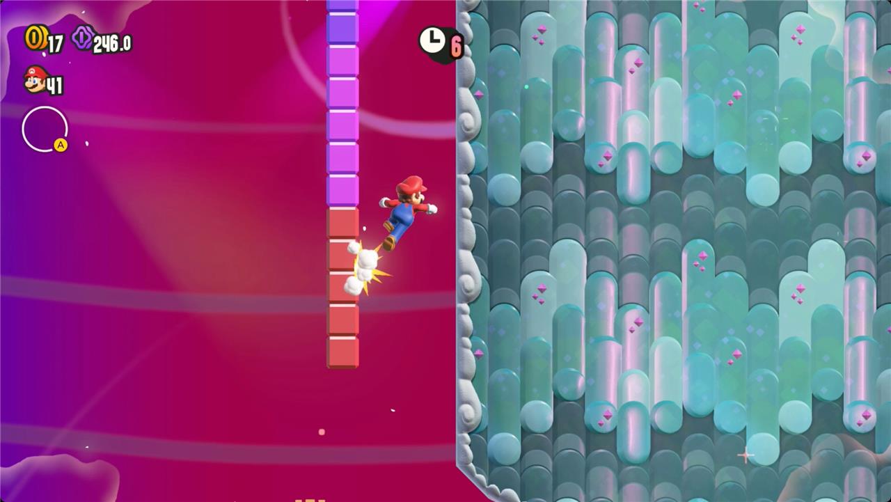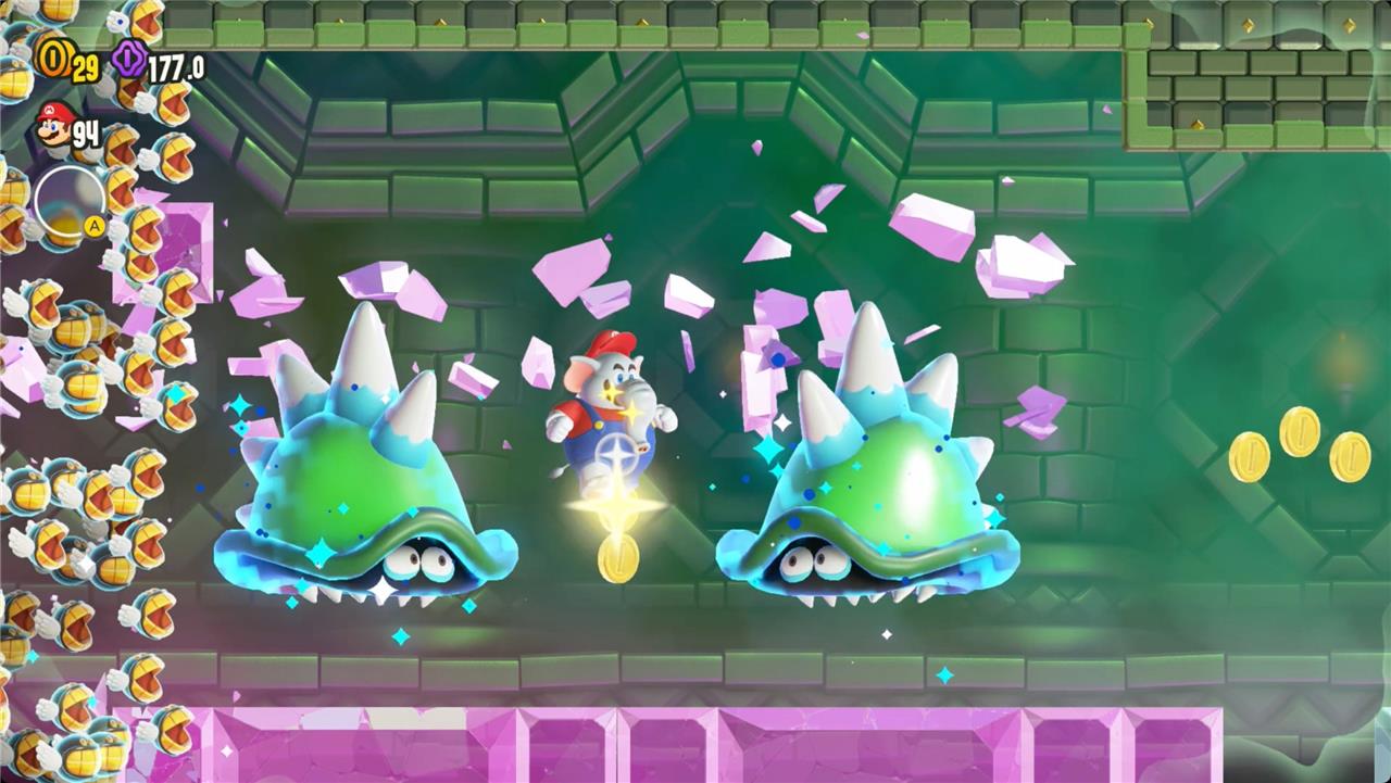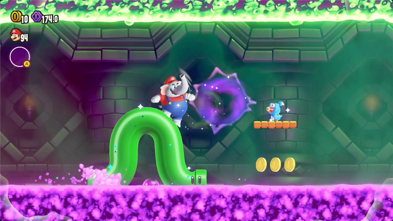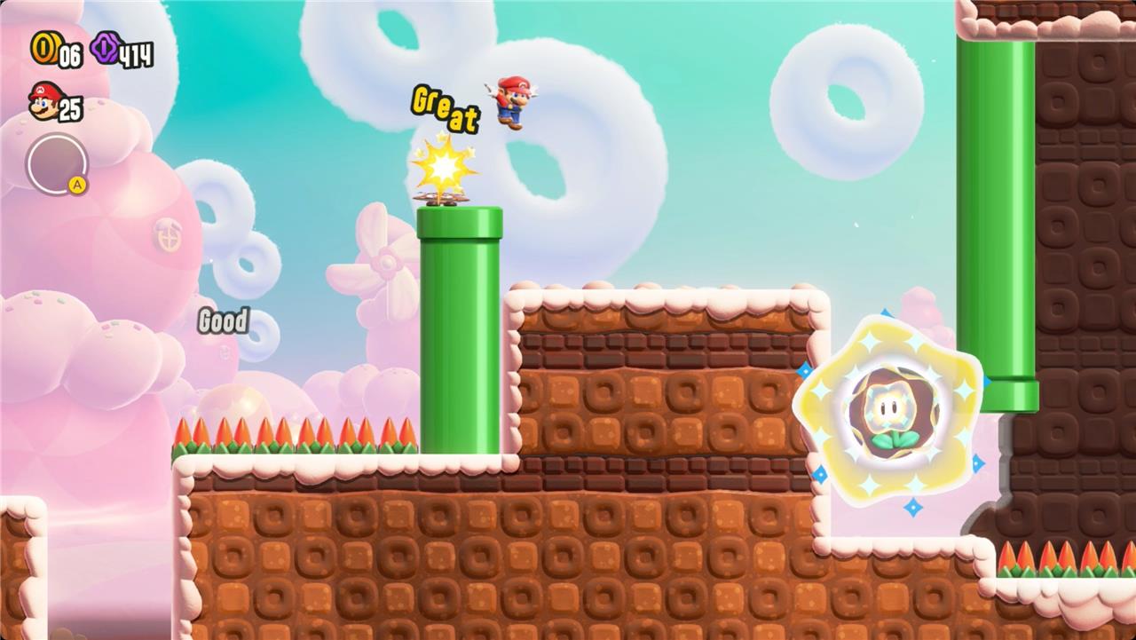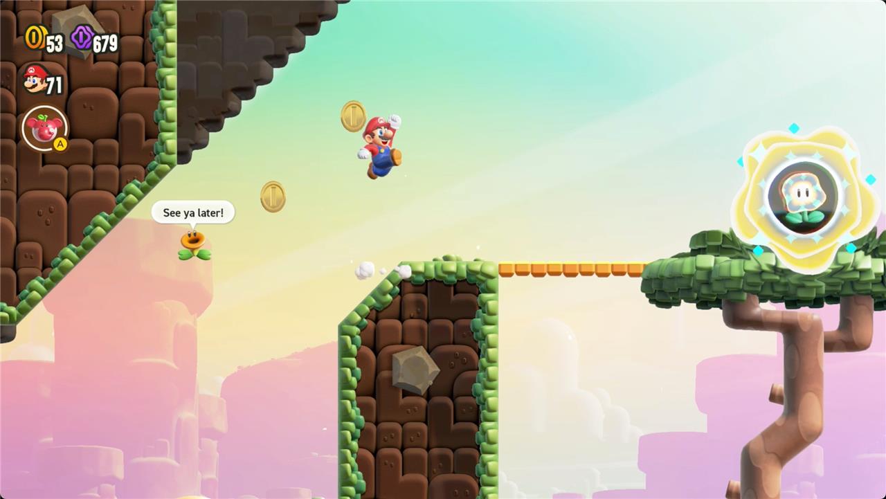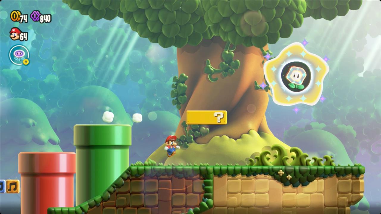 Most levels will have a Wonder Flower to collect. This special flower triggers a trippy reframing of the current level – sometimes the gravity disappears or you enter a twilight realm or multihued bubbles will carry you into the sky. Many of the Wonder Flower sequences end with a Wonder Seed.