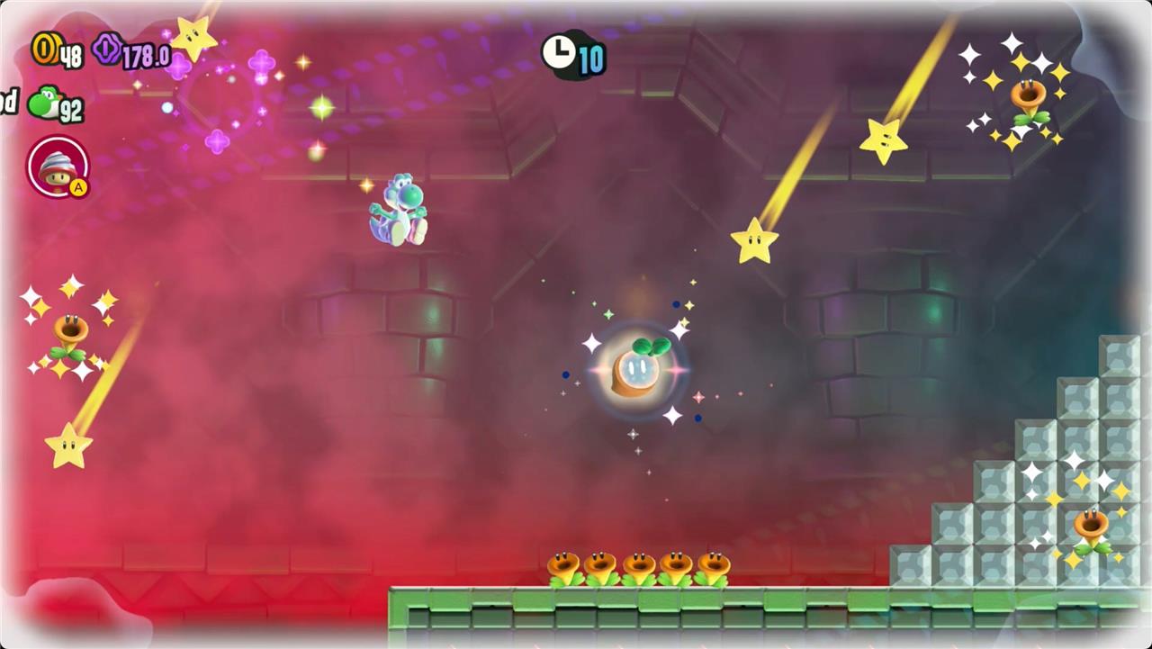 It’s a very long level, and if you get frustrated, remember that the Yoshis and Nabbit don’t take damage from enemies. Using them is a completely valid way to (finally) make it through this level to collect the Wonder Seed.