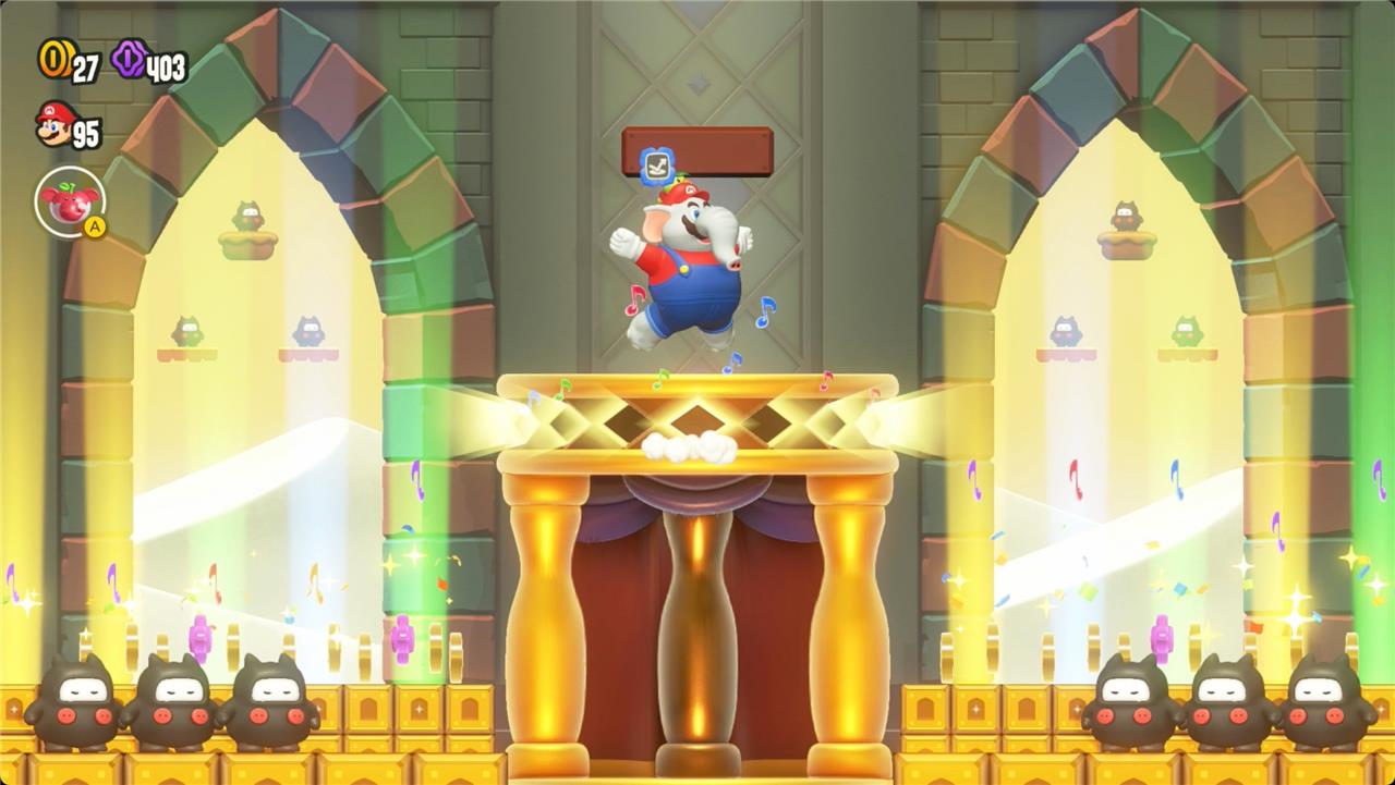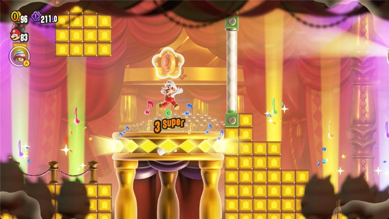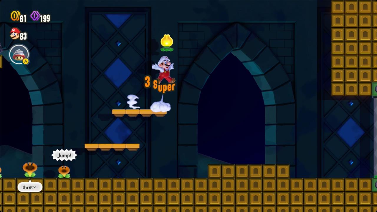 Jump in time with the music to keep the stage raised and collect the Wonder Seed.