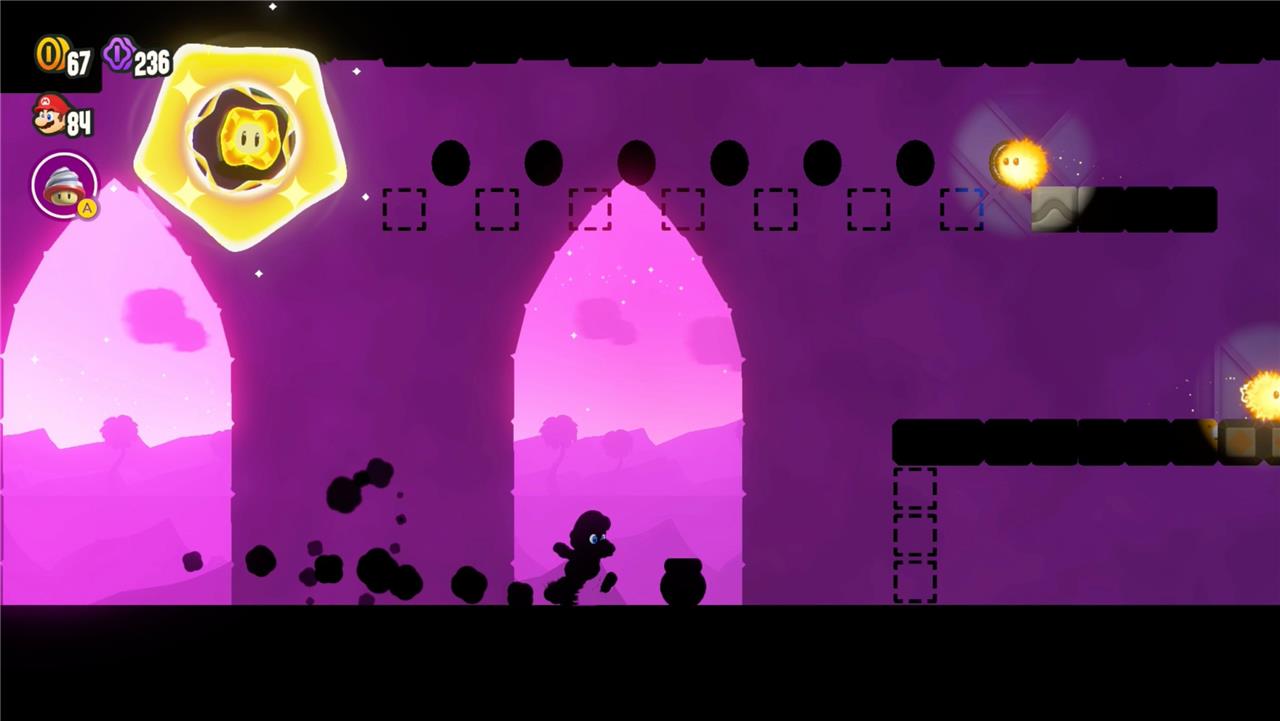 Use the Switch Block to turn out the lights and reveal the Wonder Seed. The platforms will still be there, but you can’t see them so you’ll have to remember their locations.