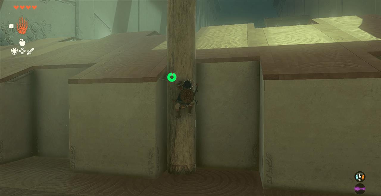 1. You’ll notice a log on the left side of the room as you move into the main space. Rotate it using Ultrahand and place it vertically alongside the next platform.