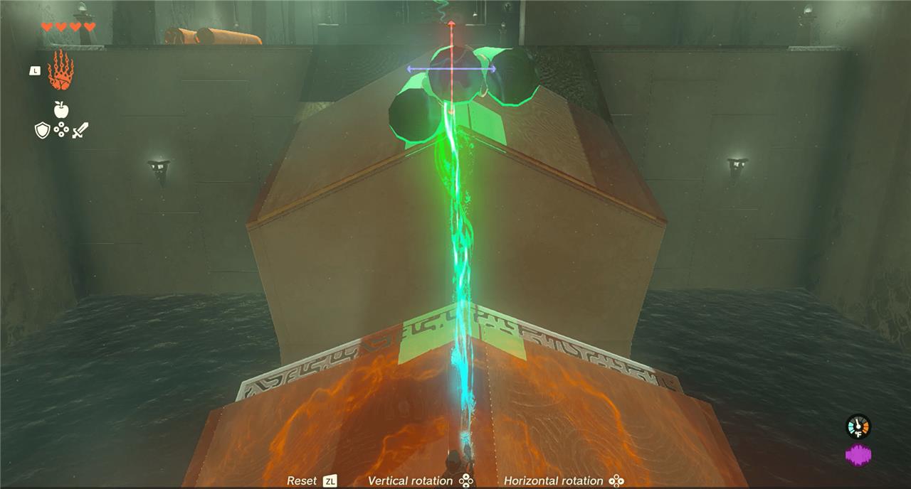 • You can then either turn the raft around with Ultrahand or swim back across the pool to reach the main altar and finish the shrine.