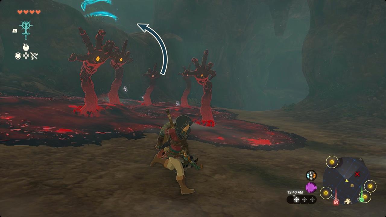 Gloom Hands and Phantom Ganon guard the path to Taki-ihaban Shrine in Lindor’s Brow Cave, but you can defeat or bypass them.