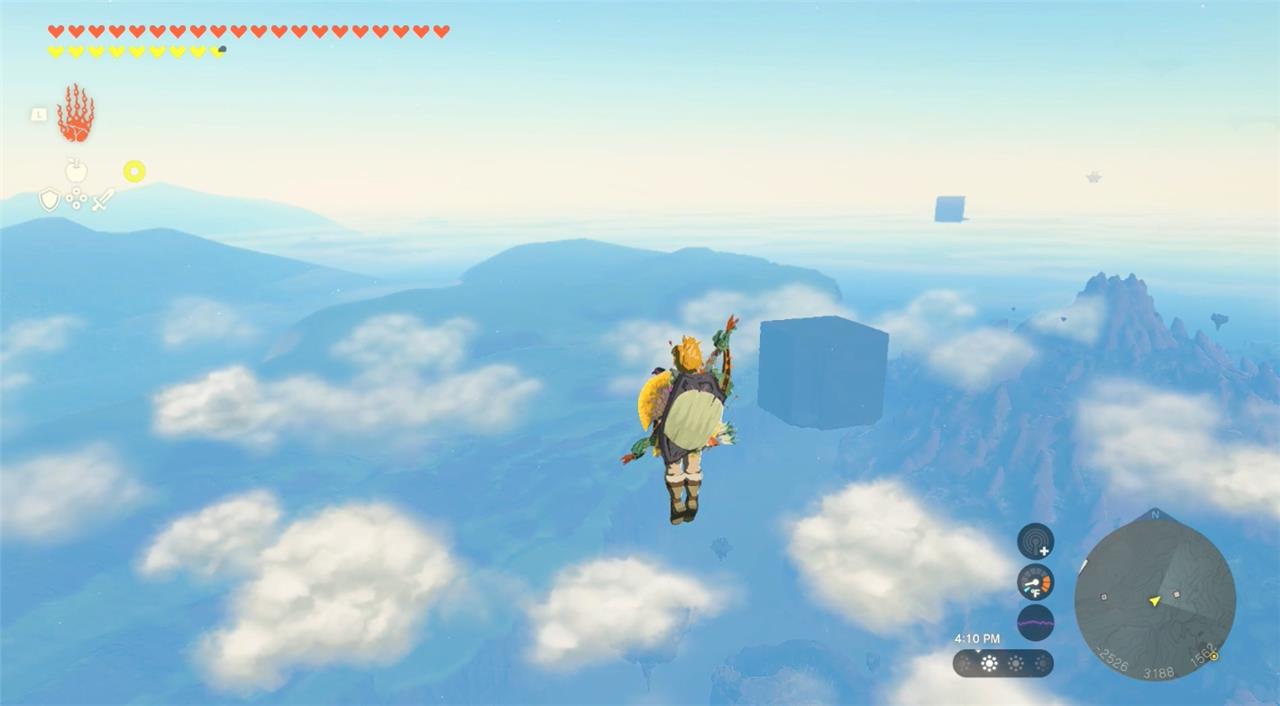 1. Start at the Wind Temple, then proceed east, leaping off the ship and bouncing on the ship trampolines until you’re paragliding east without a safety net. If you see the floating cubes, you’re headed the right way.