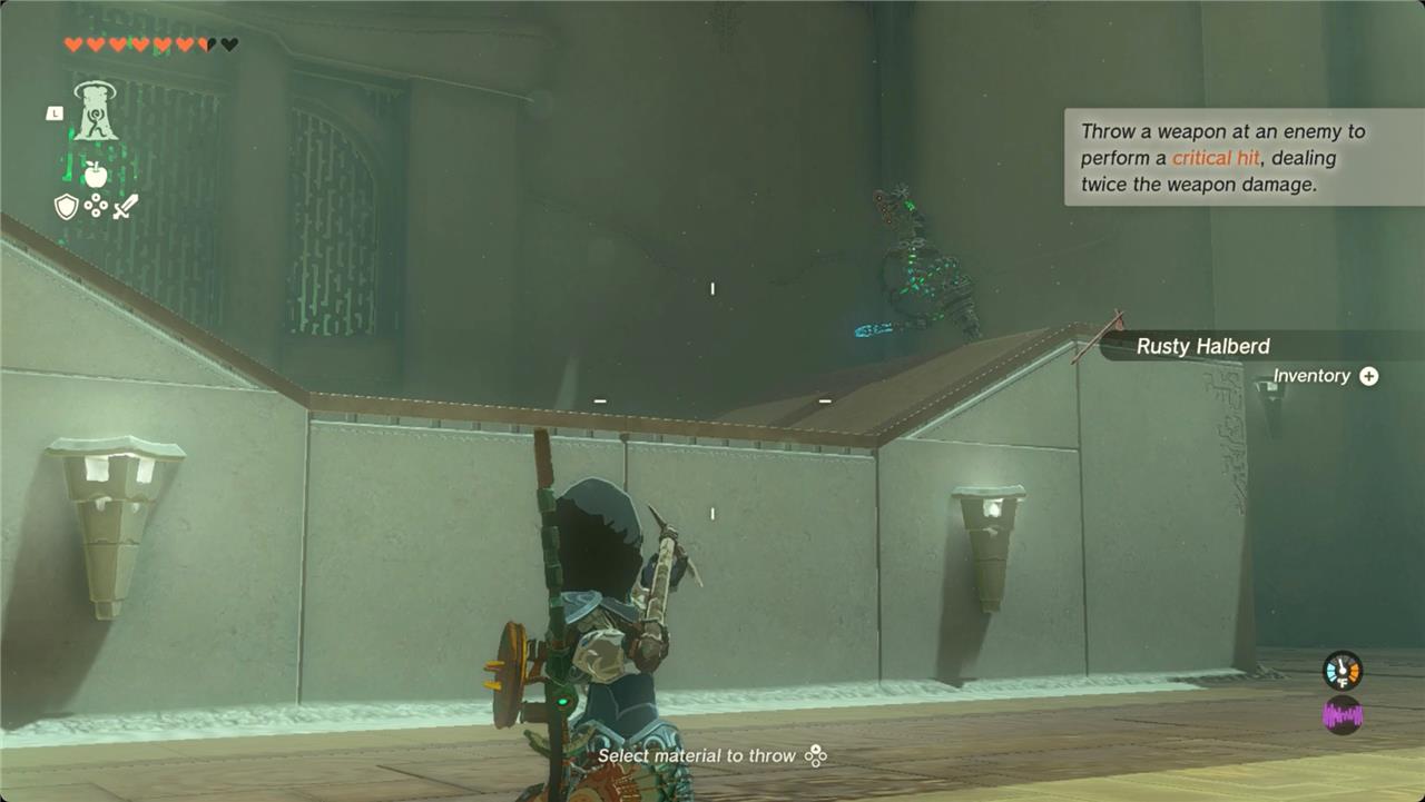 1. When you enter Teniten Shrine, you’ll see a Zonai Construct on a raised platform ahead of you. You’ll get instructions that your job is to throw your weapon at it.