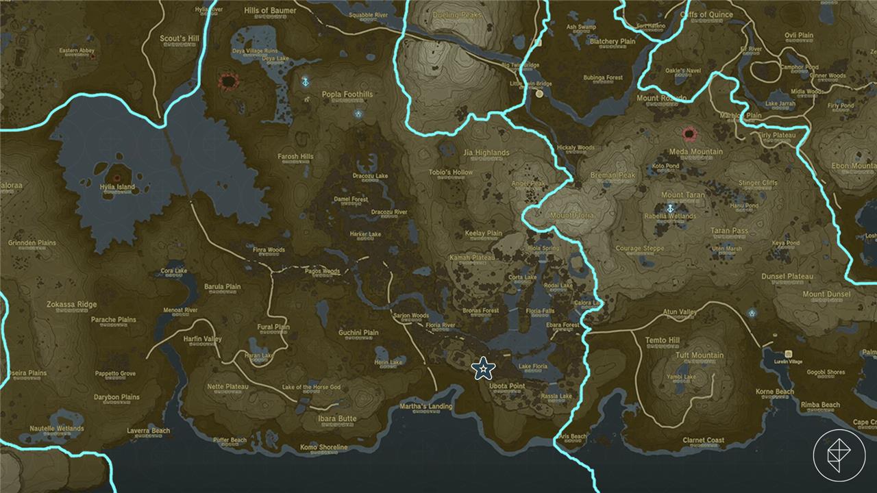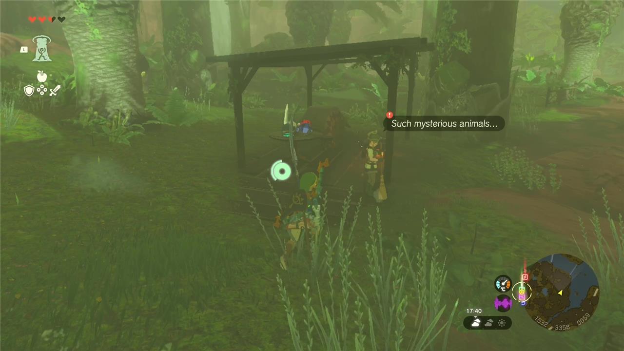 You can begin the search for the mysterious creature in the Highland Stable, located in the Faron Grasslands region. Speak with Penn outside the stable to hear rumors about a strange beast seen nearby. Follow the hints he provides and head southwest toward the forested cliffs near Lake Hylia, where traces of large footprints and broken branches can guide you closer to the creature’s hiding place.