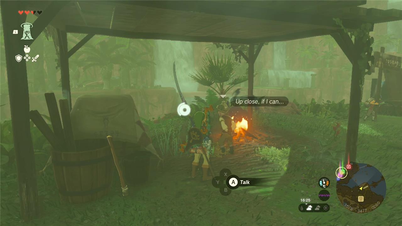 Link begins in the Snowfield Stable where Penn asks about a strange creature sighted nearby. After talking to Harlow, you’ll learn that a large animal has been visiting recently. Follow the marked path toward the Hebra Mountains and you’ll find CIMA, who reveals the “beast” is actually Princess Zelda gently caring for Dondon creatures. Speak with her to complete the investigation and return to Penn at the stable to finish the side adventure.