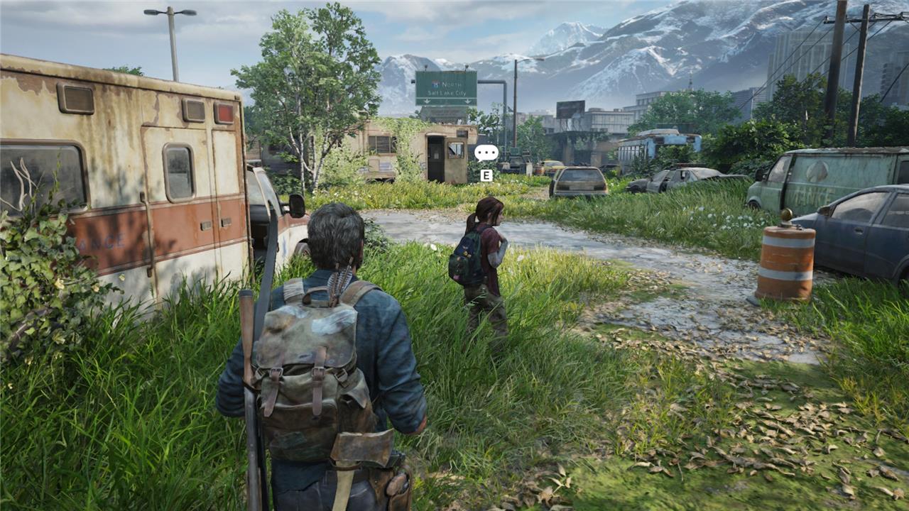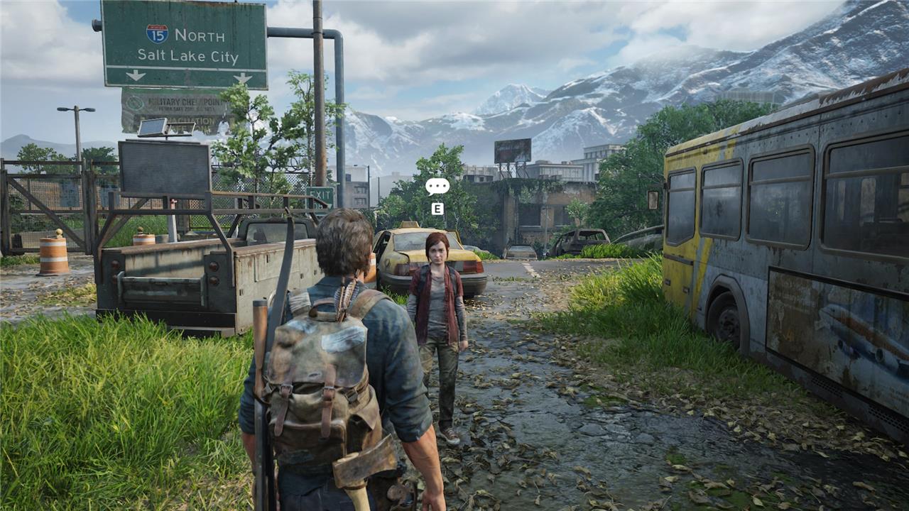As you gain control of Joel, you’ll walk down the highway with Ellie. Joel will talk about teaching Ellie how to play the guitar, prompting an optional conversation.
