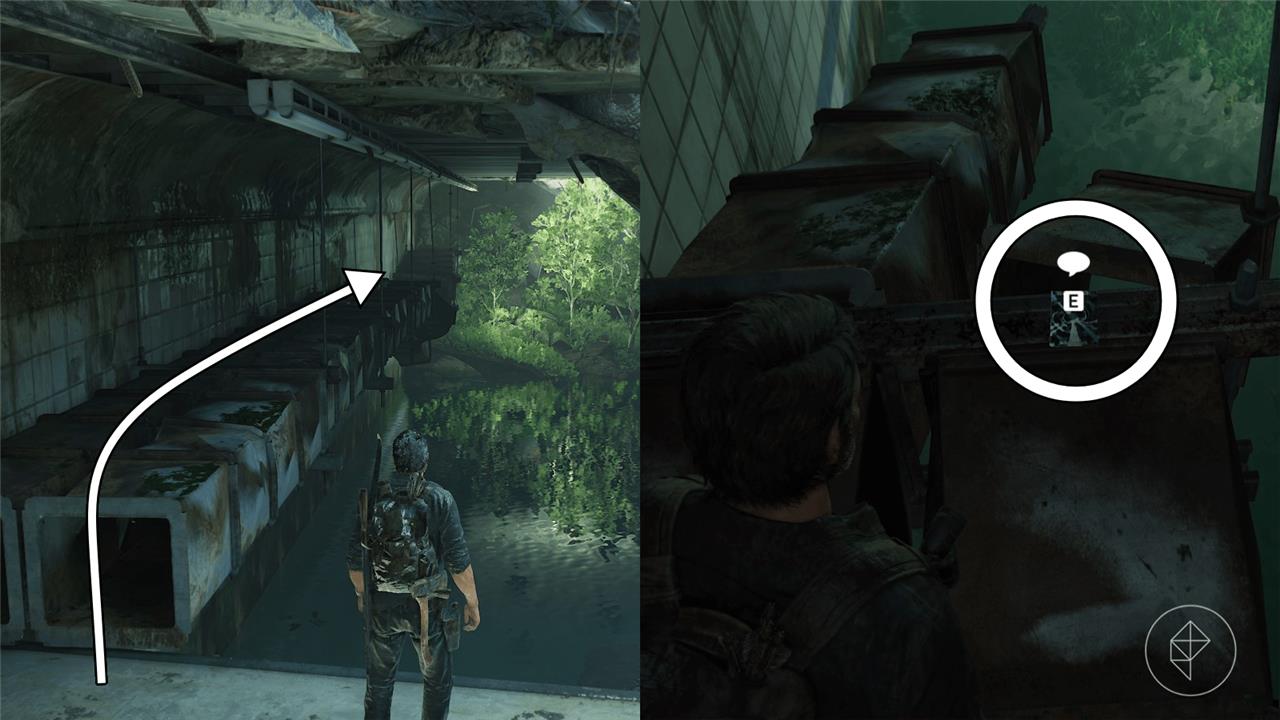 This section of the Bus Depot chapter hides several items in the dark tunnels beneath the city. You can pick up an Artifact called the Family Photo near the flooded area after helping Ellie across the water. A Firefly Pendant is found near the train car before reaching the exit. Be sure to search every corner and use your flashlight often, as some collectibles blend into the shadowy environment.