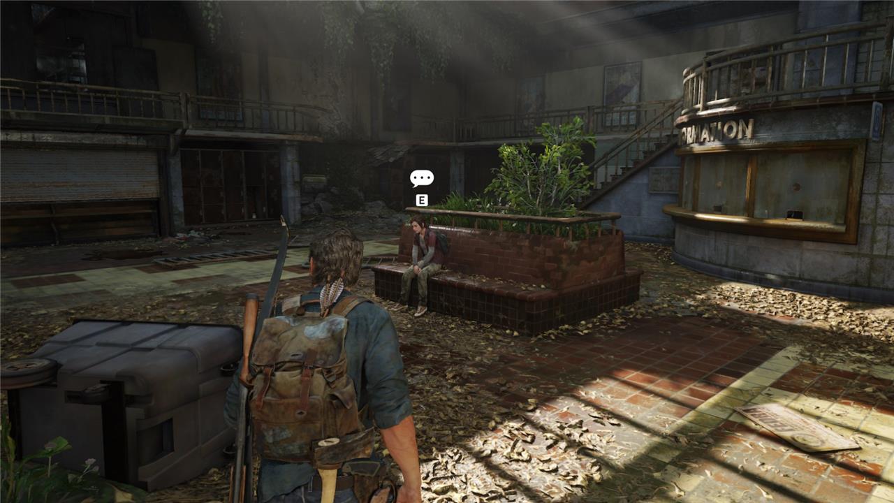 After you collect the note, turn around to find Ellie sitting on a brick bench in the center of the station. Interact with Ellie to start an optional conversation.