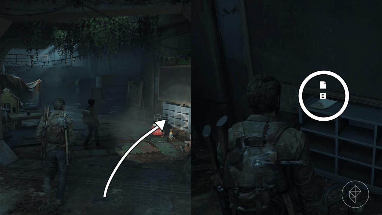After you and Sam get separated from Henry and Ellie, you’ll need to take out a clicker and a ton of stalkers. Once they’ve been handled, continue down the center or right path to eventually reach a play room. Search the shelf on the right to find the Kid’s Drawing on top of it.