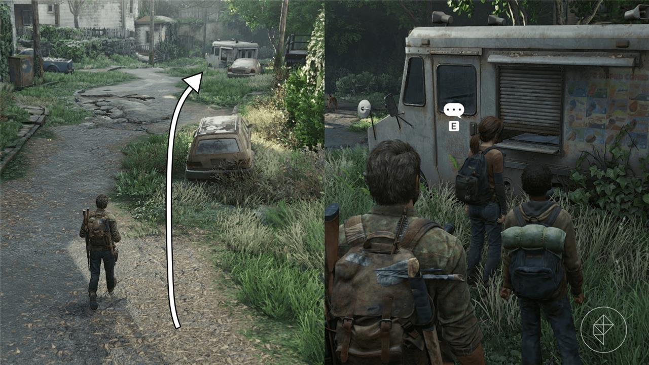 Continue down the road to find an abandonded ice cream truck in the middle of the road. Ellie wonders what it is, but Sam tells her that it’s a truck that would hand out ice cream. Ellie doesn’t believe that it’s true, so she asks Joel – triggering an optional conversation.