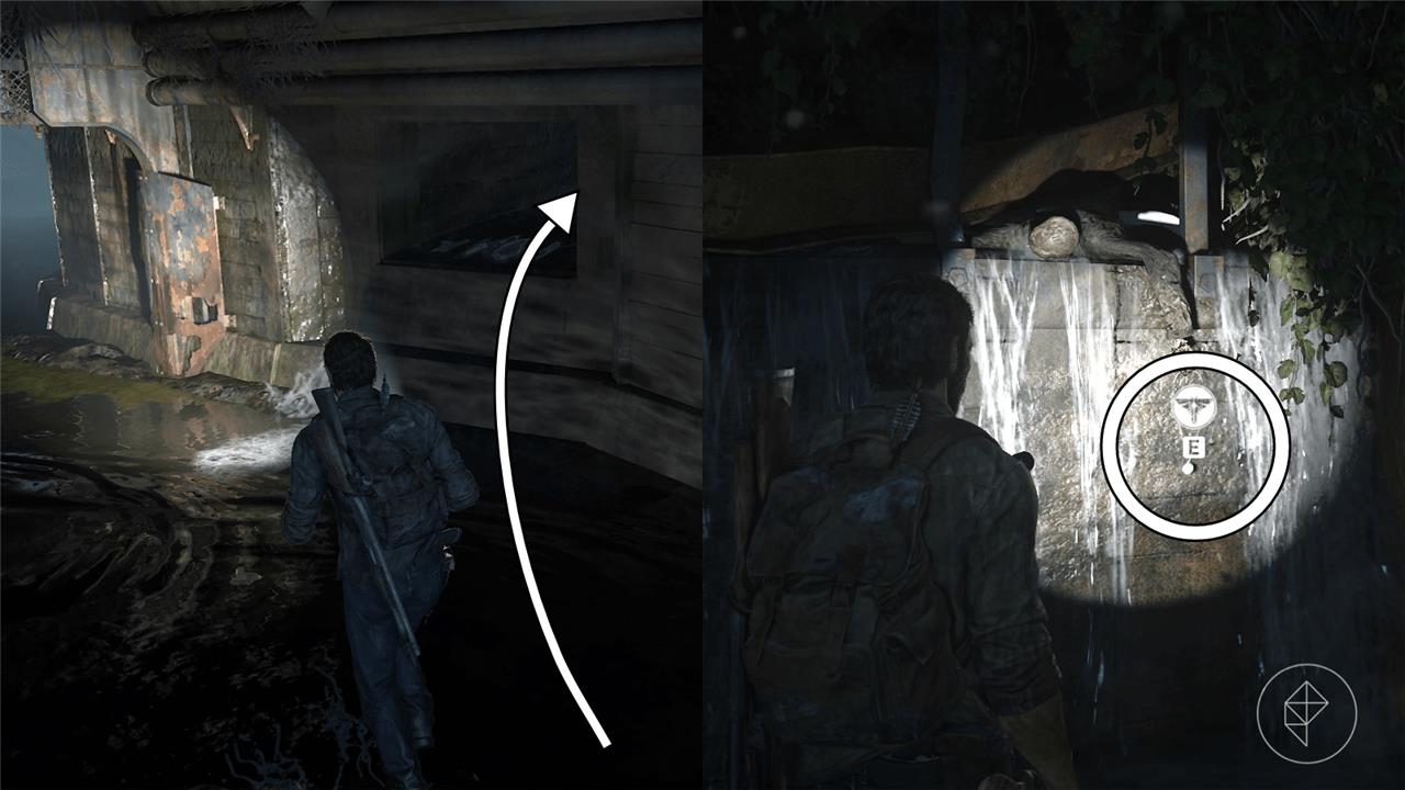 The Sewers section in The Last of Us Part 1 (Chapter 6: The Suburbs) contains 11 collectibles: 6 artifacts, 3 Firefly pendants, 1 comic, and 1 training manual. No detailed official in-game maps exist, but guides describe linear paths with precise steps from the riverbank start (after reuniting with Henry and Sam) to the vending machine barricade end.
