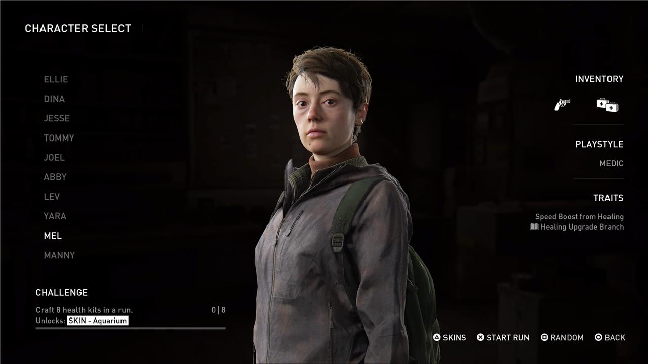 To unlock Mel in The Last of Us Part 2’s No Return roguelike mode, you must complete three encounters while playing as Yara. Once unlocked, Mel joins Abby’s faction as a medic-focused character. She starts each run equipped with a revolver and two health kits. Mel’s standout trait is that every time she heals, she receives a temporary speed boost, making her especially effective at quick recovery during tough encounters. Additionally, she has access to the Healing Upgrade Branch, which allows her to further enhance her healing abilities throughout a run. This combination of traits makes Mel an excellent choice for players who prioritize survivability and team support.