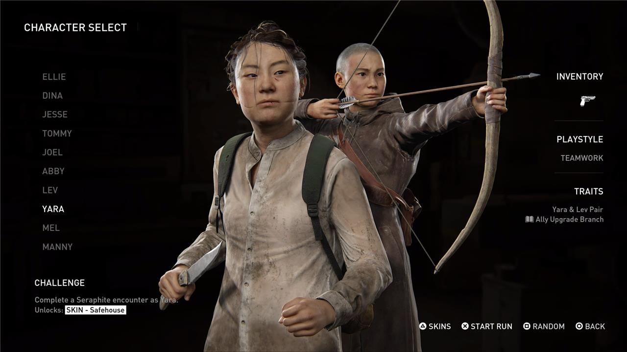 Yara is unlocked in The Last of Us Part 2’s No Return roguelike mode by completing three encounters while playing as Lev, who himself is unlocked after finishing two encounters as Abby. Yara stands out as a unique character because she is always accompanied by Lev as an AI companion during every stage, providing both offensive and defensive support. Her starting loadout is minimal, featuring only a pistol, but her main advantage is the teamwork dynamic with Lev, who can be upgraded to become even more effective between encounters. Yara’s trait set centers on this partnership, utilizing the Ally upgrade branch to enhance Lev’s abilities and overall team synergy, making her ideal for players who prefer a cooperative playstyle within solo runs.