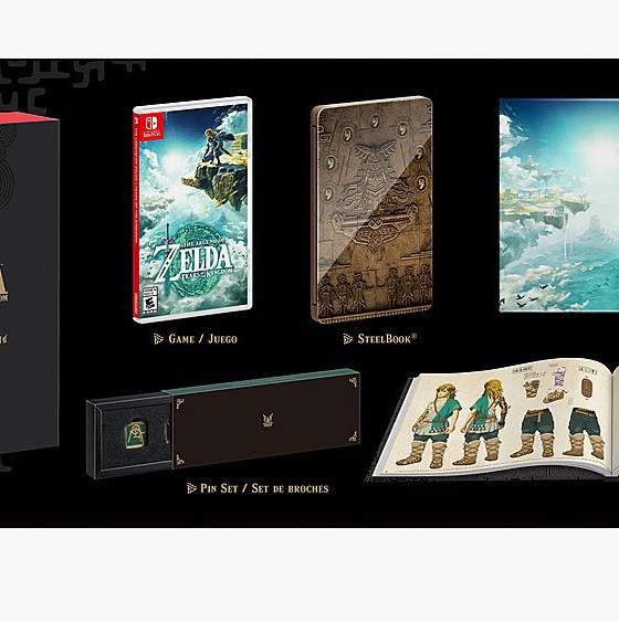 The Collector’s Deluxe Edition of Tears of the Kingdom comes packaged with a SteelBook case, a concept art booklet, a poster, and a set of four enamel pins in addition to a physical copy of the game.