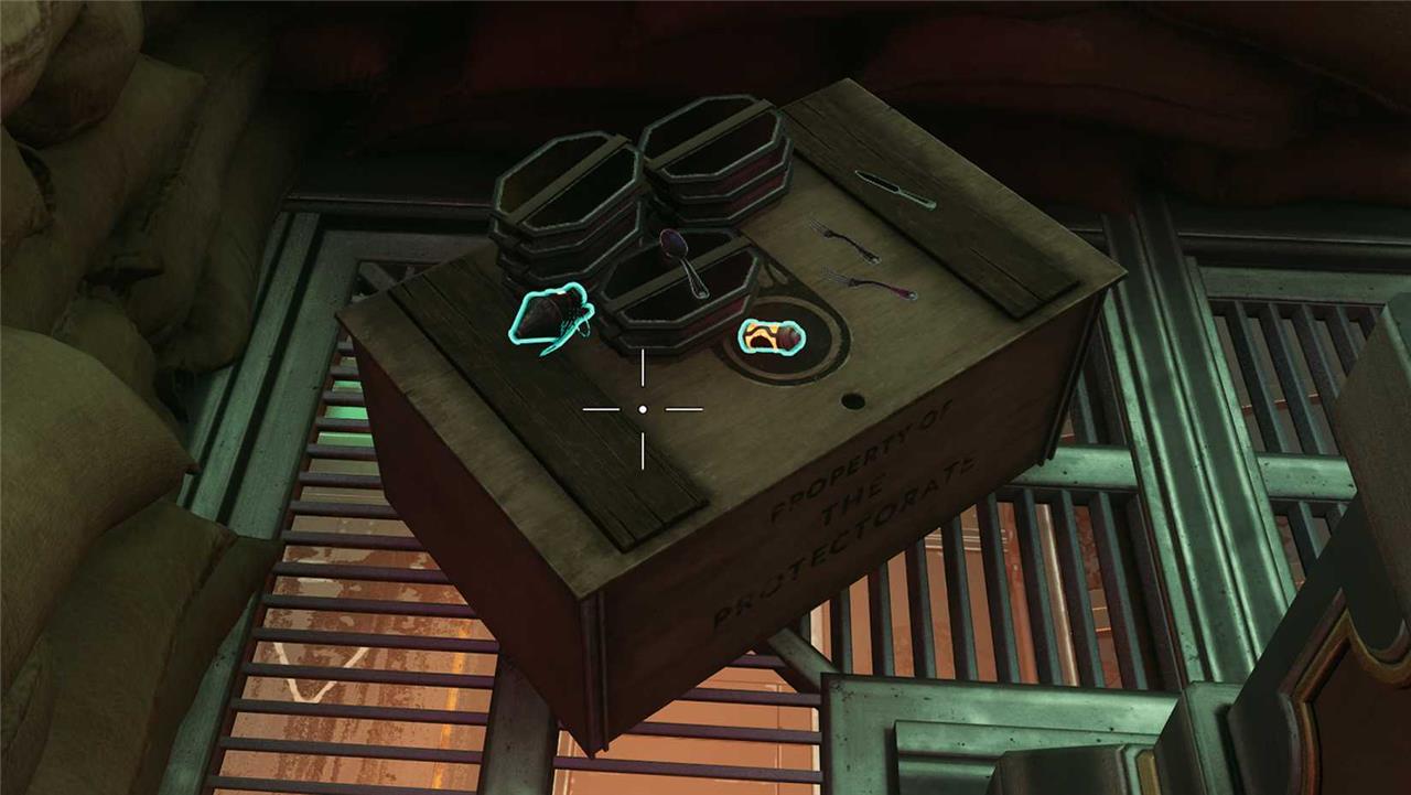 In The Outer Worlds 2, it’s very easy to accidentally steal stuff. There’s no pop-up to warn you when you’re about to grab an item that belongs to someone else, and the outline of this item will be the exact same as a piece of free loot (light blue by default). In the example below, one of the items is loot, the other can be stolen; the only visual difference between them is the red text that reads “steal” if you hover over the non-loot.