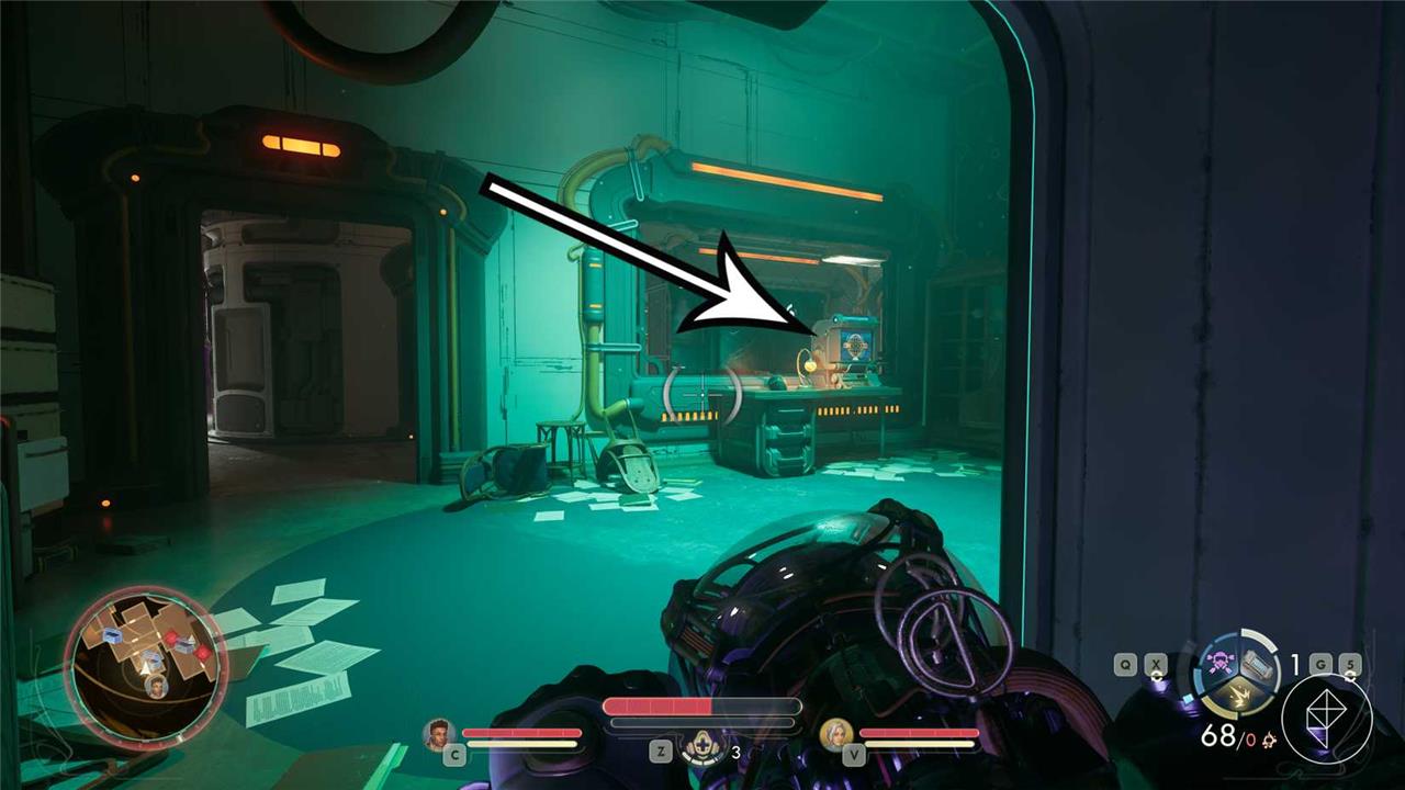 First, be sure to equip the N-Ray Scanner to see any invisible enemies. On the left side of the room, enter the small vent. After exiting the vent, you might want to interact with Victor’s terminal, which can be seen in the image below: