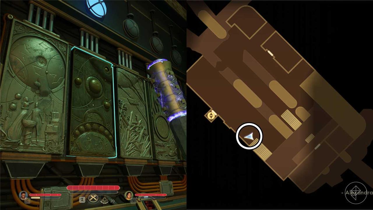 The first mural piece you can find is located at Alexandra Station, which is near the landing pad. Enter the station and head to the elevator. To the left of the elevator, you’ll find a replica of a mural with one of the original pieces for you to take.