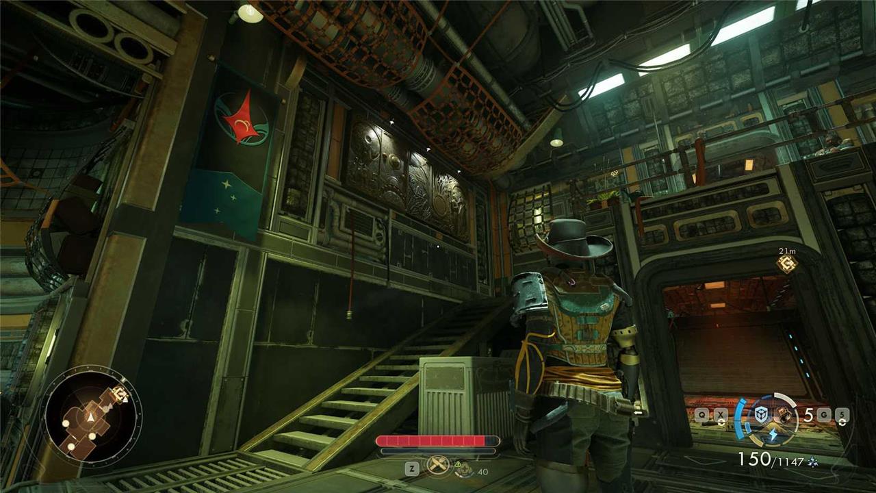 The hardest mural piece to reach in The Outer Worlds 2 is the one located at the Guardian Estates tram station. This location is occupied by scrappers, making it a combat-heavy area. To get this mural piece, you must navigate through the scrapper camp, climb the ramps, and reach the highest level of the tram station where the mural is located on the wall. Access to this area requires careful movement and some fighting to get to the top level safely.