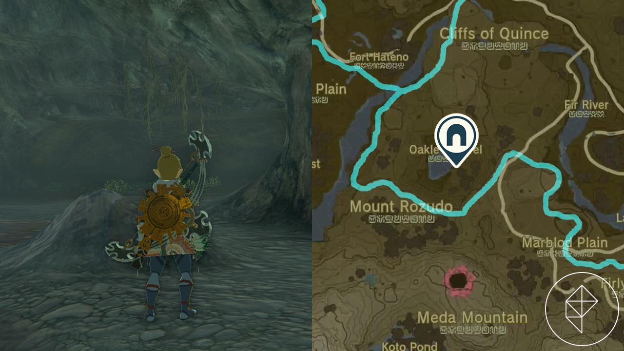 Glide over Meda Mountain and Mount Rozudo until the pond appears in the canyon below. Descend to the pond’s bottom, swim or dive east to the hidden cave mouth guarded by a Shock Like-Like-bypass it by sneaking or using ranged attacks.
