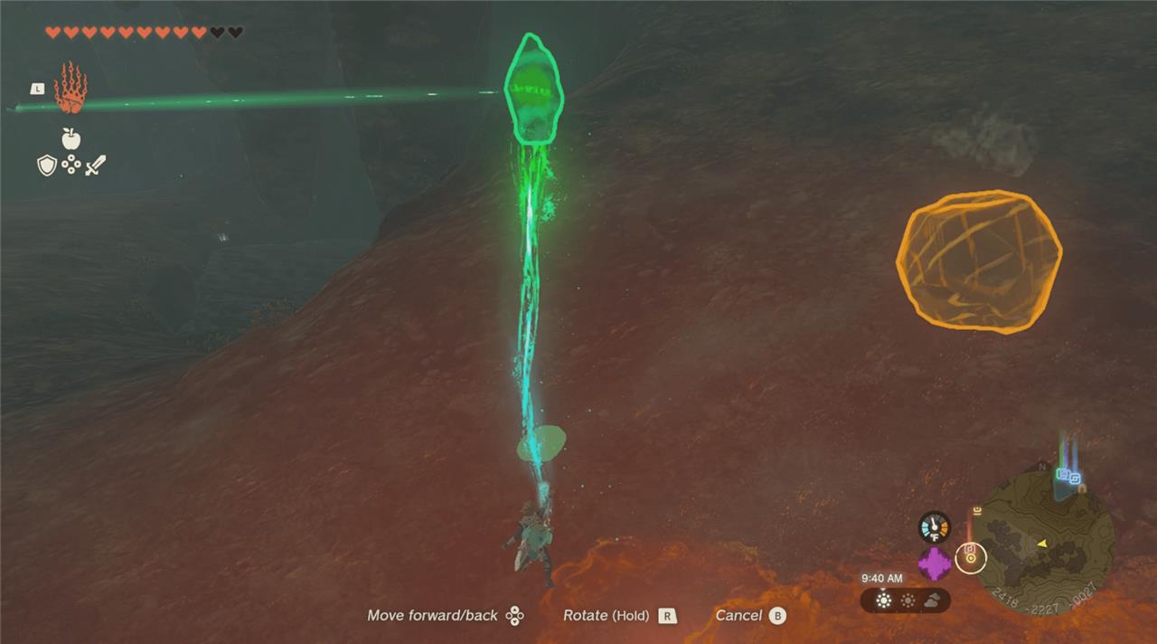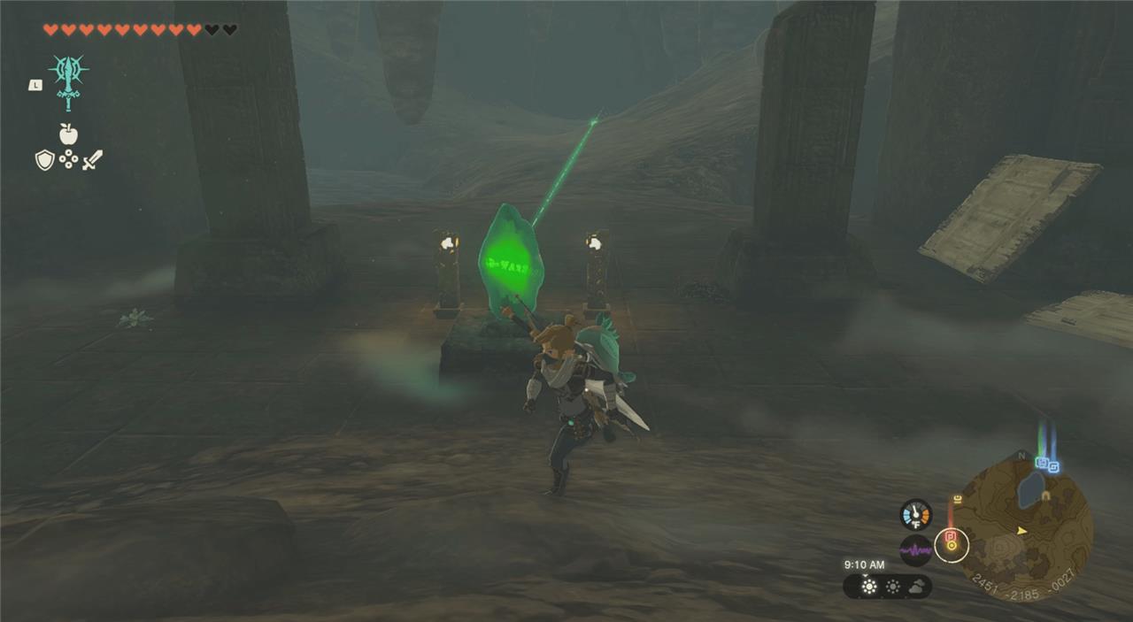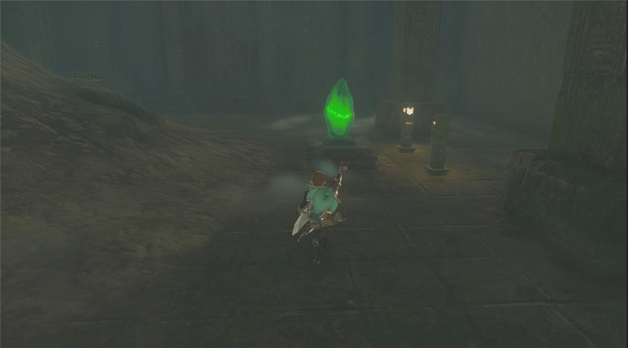 Using Ultrahand to carry the crystal, weave your way through the rocks and walk in the general direction of the beam of light. It looks pretty stressful, because there are so many hazards, but there is a decent amount of space between each rock so you can wait until it’s safe to continue to walk through.