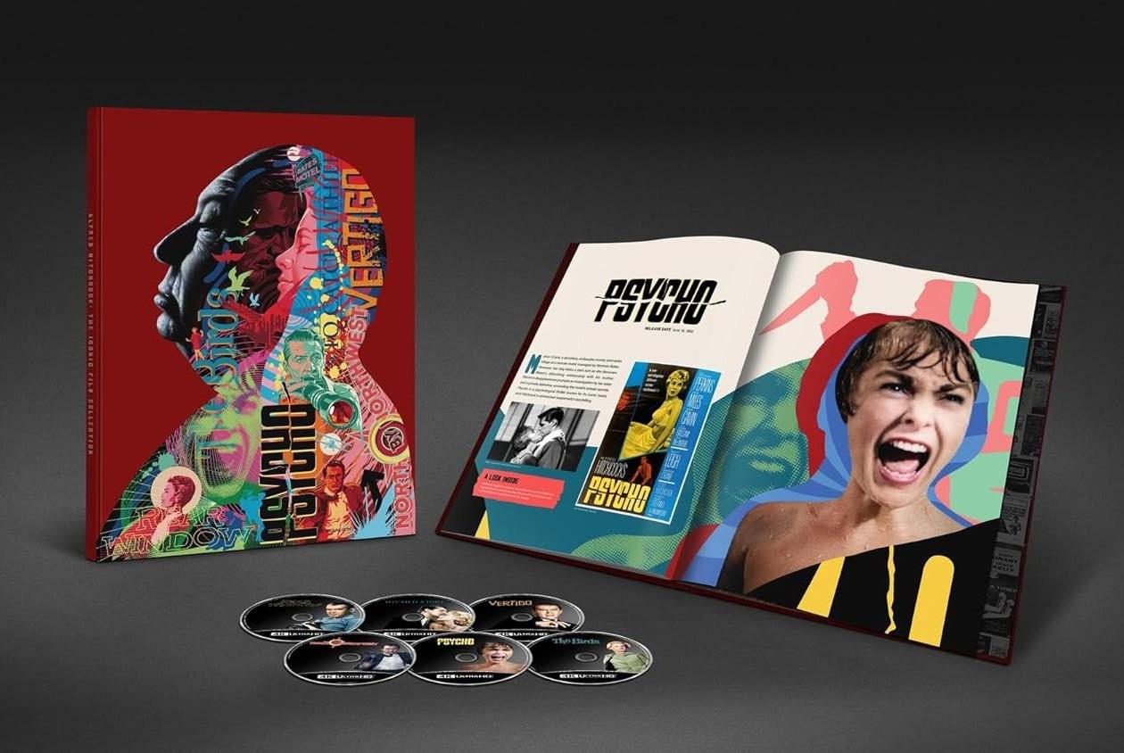 Hitchcock: The Iconic Film Collection contains 38 pages of art, history, trivia, and behind-the-scenes details. And tucked within the pages, you’ll find the discs for Rear Window, To Catch a Thief, Vertigo, North by Northwest, Psycho, and The Birds. The cover art is by LA-based painter, designer, and muralist Tristan Eaton.
