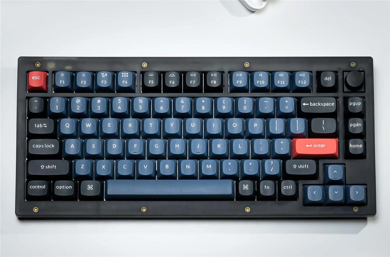 The V1 features customizabl e RGB lighting and a knob that can be used to control media playback. Those features, plus all of the keys, can be remapped to other functions using Keychron’s web-based VIA software.