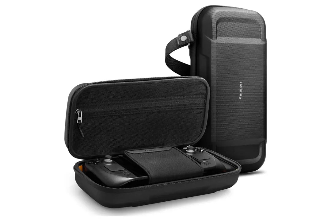 It’s a shame that Valve doesn’t offer its improved case bundled exclusively with the Steam Deck OLED 1 TB edition for general sale. It gives you the option of a thick, tough case Deck owners are used to, but its special trick lies in its ability to transform into a slimmer case when you pull away its Velcro-locked inner layer. Until that becomes widely available, anyone who’s looking for a case replacement should check out Spigen’s Rugged Armor Pro, a semi-hard case with a pocket. Additionally, it secures the Deck inside with a strap, and if you’re worried about losing your console, there’s enough room in its pocket for a Bluetooth tracker, like an Apple AirTag.
